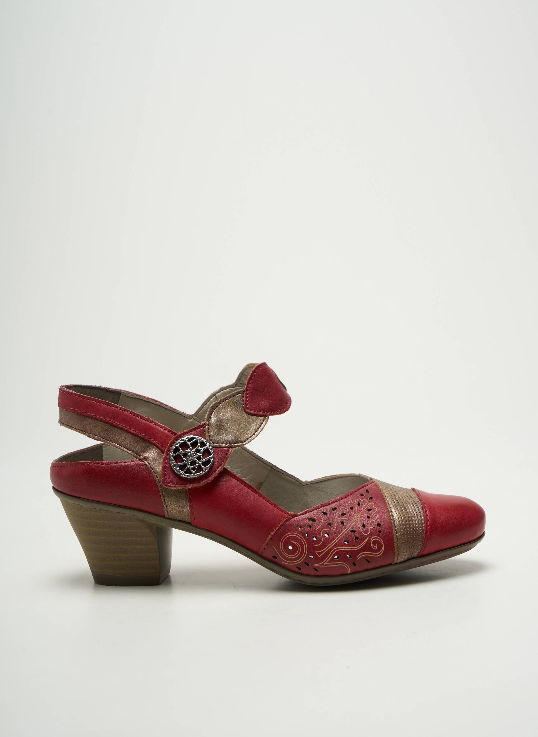 Profitez d’un vrai bon plan avec cette sandale signée Rieker, idéale pour ajouter une touche de couleur à vos tenues estivales sans vous ruiner. Sa teinte rouge relevée de détails dorés et son élégant talon assurent une allure féminine et moderne, tandis que la bride ajustable et la broderie délicate apportent confort et originalité à ce modèle à prix mini.