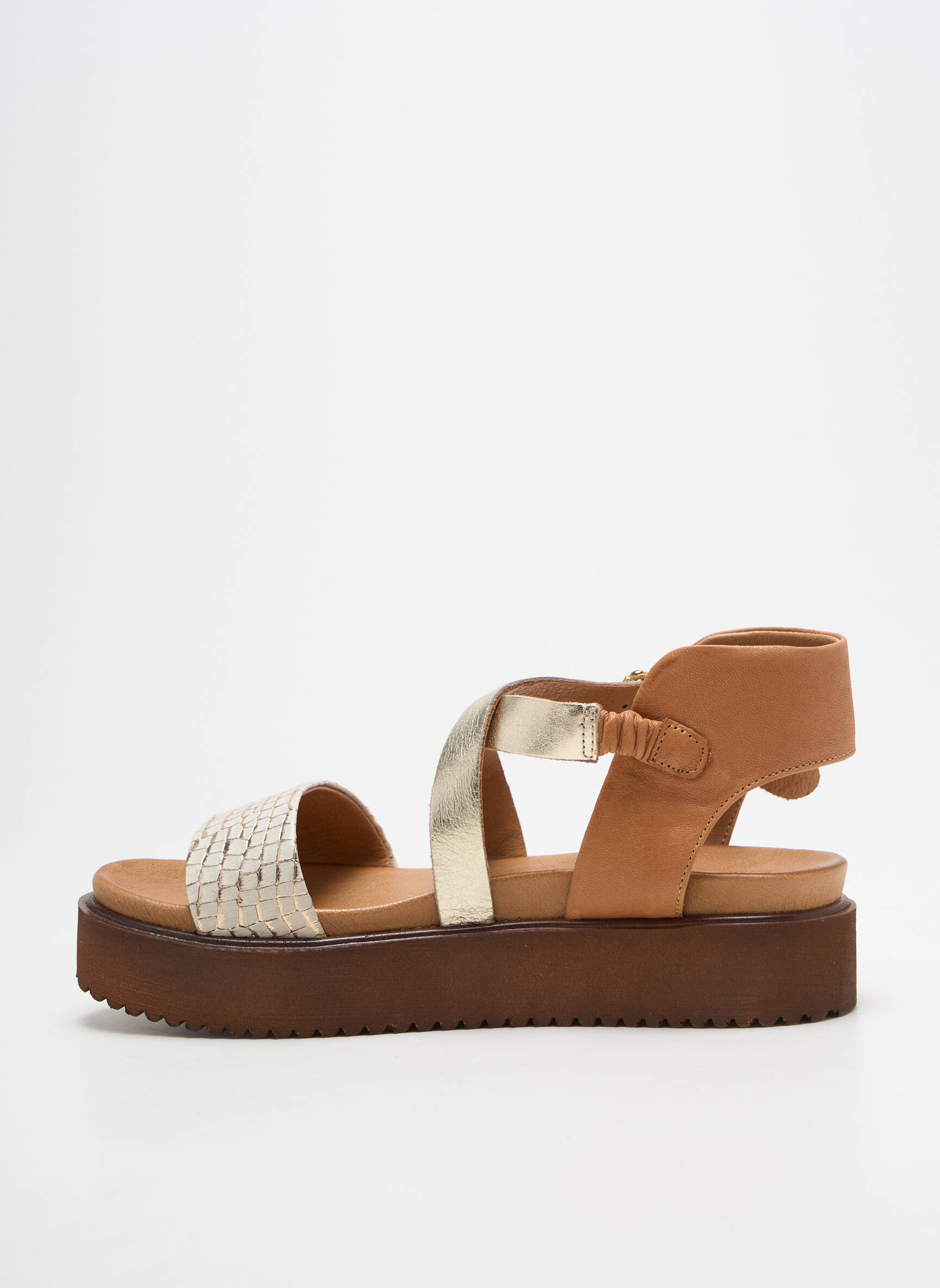 Craquez pour ces sandales SANTAFE pour femme, une véritable affaire à ne pas manquer pour sublimer votre été sans vous ruiner. Avec leurs brides dorées métallisées, leur finition effet python et leur semelle épaisse à la fois confortable et tendance, elles s'imposent comme le choix parfait pour celles qui veulent conjuguer style et économies. Profitez d’un look chic à prix ultra doux grâce à ce bon plan déstockage, idéal pour moderniser votre dressing à petit prix.