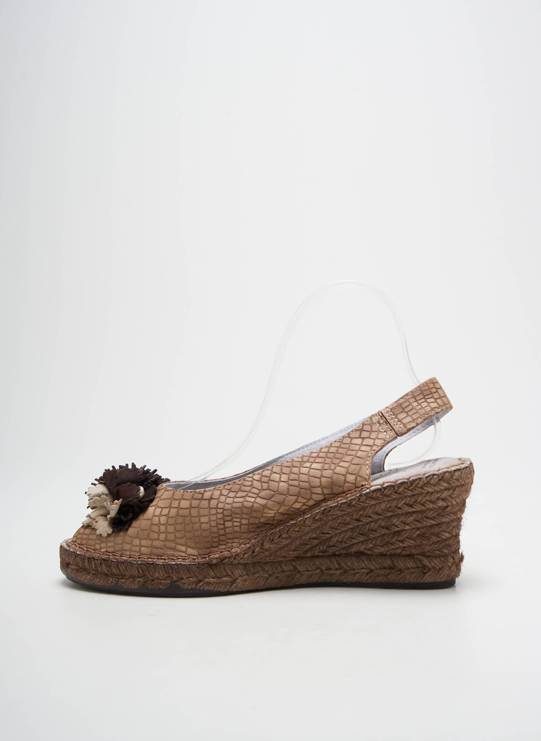 Profitez d’un bon plan irrésistible avec ces sandales Toni Pons pour femme, parfaites pour l’été sans se ruiner. Leur allure sophistiquée mêle un effet reptile chic et une jolie fleur sur le dessus, tandis que le talon compensé en corde apporte confort et élégance pour toutes vos sorties. Voilà la paire idéale pour sublimer vos tenues estivales à prix doux.