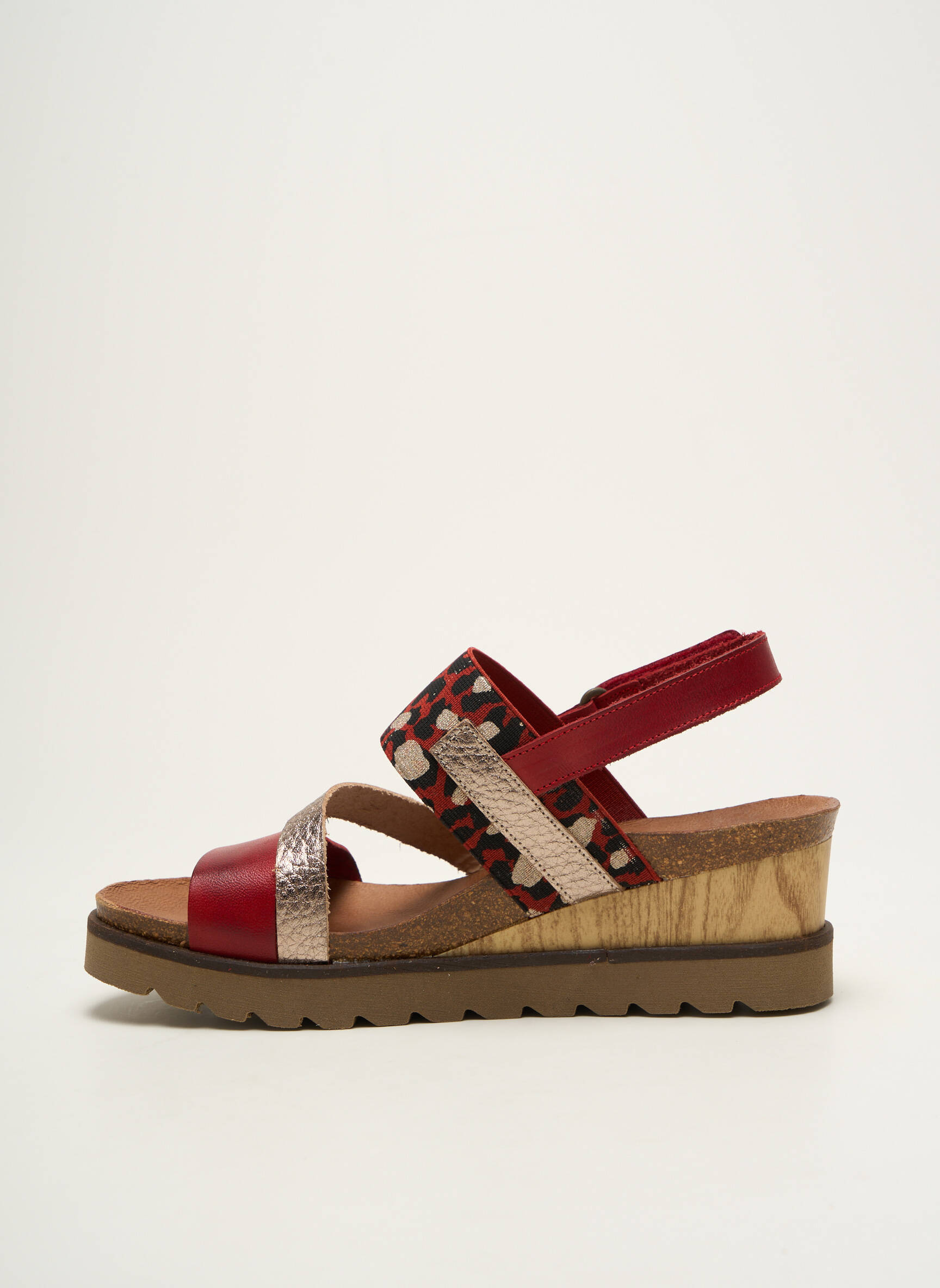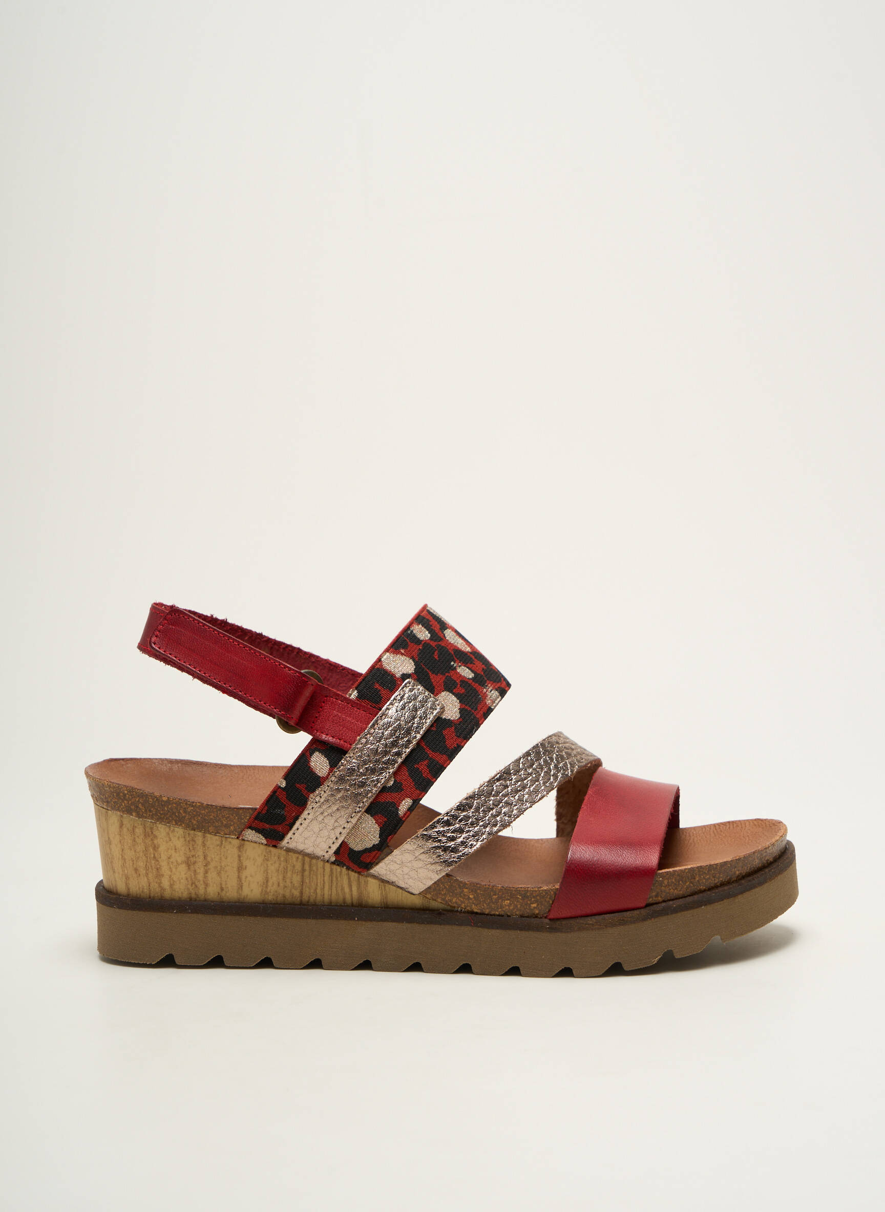 Craquez pour ces sandales XAPATAN pour femme, une véritable opportunité à prix mini pour allier confort et originalité cet été ; elles séduisent par leurs brides croisées aux motifs et matières variés, mêlant le rouge profond, le motif coloré et l'effet python sur un talon compensé léger, parfait pour donner du style à chacune de vos tenues sans vous ruiner.