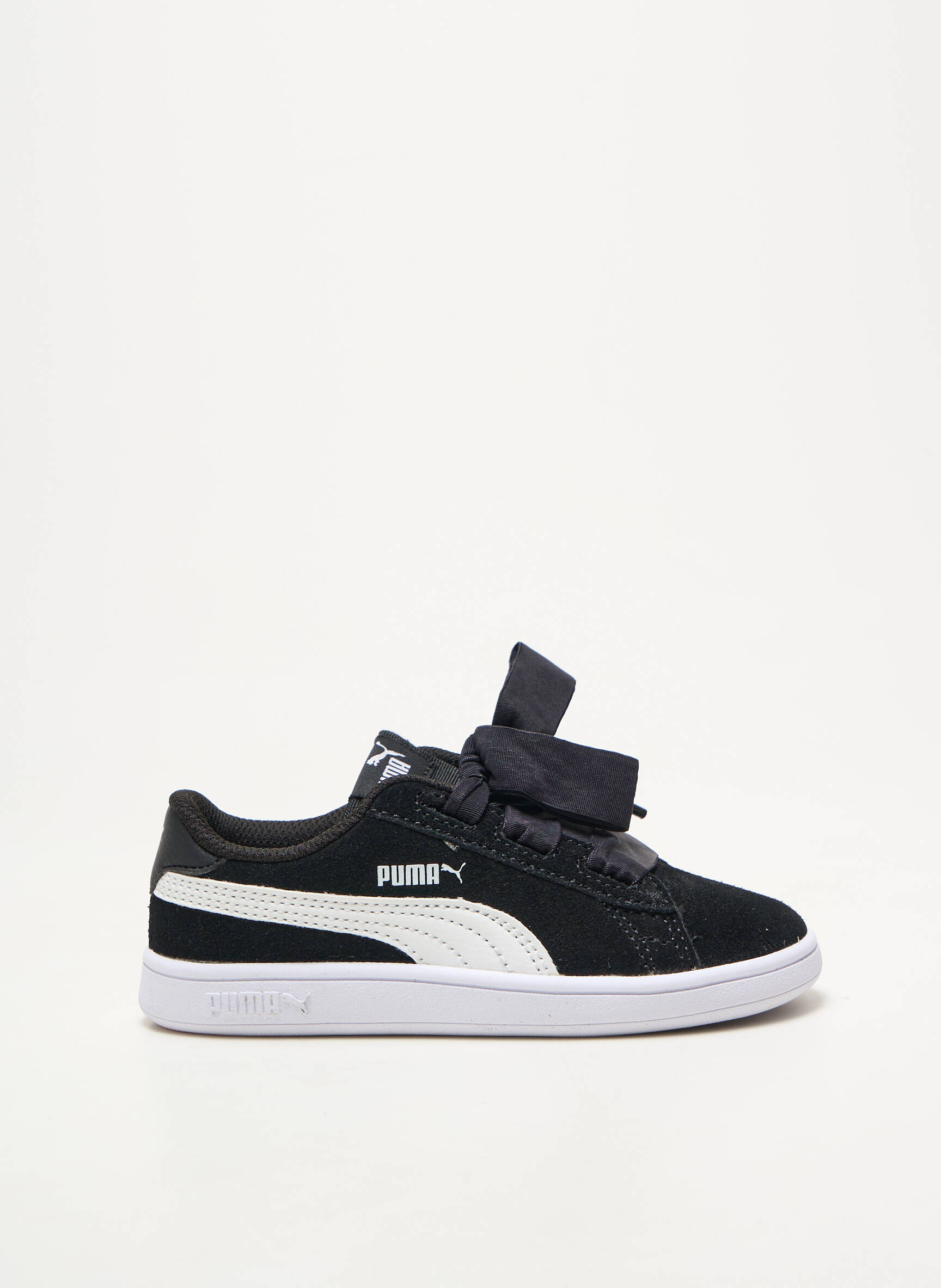 Profitez d’un vrai bon plan avec ces baskets PUMA pour fille, un modèle tendance à prix doux qui séduira par son look dynamique et moderne. Avec leur empeigne noire rehaussée du logo iconique et leur grand ruban en guise de lacet, elles apportent une touche féminine et originale à toutes les tenues quotidiennes, tout en assurant un confort optimal grâce à leur semelle blanche contrastante. Idéales pour faire des économies tout en misant sur un style actuel signé par une grande marque.