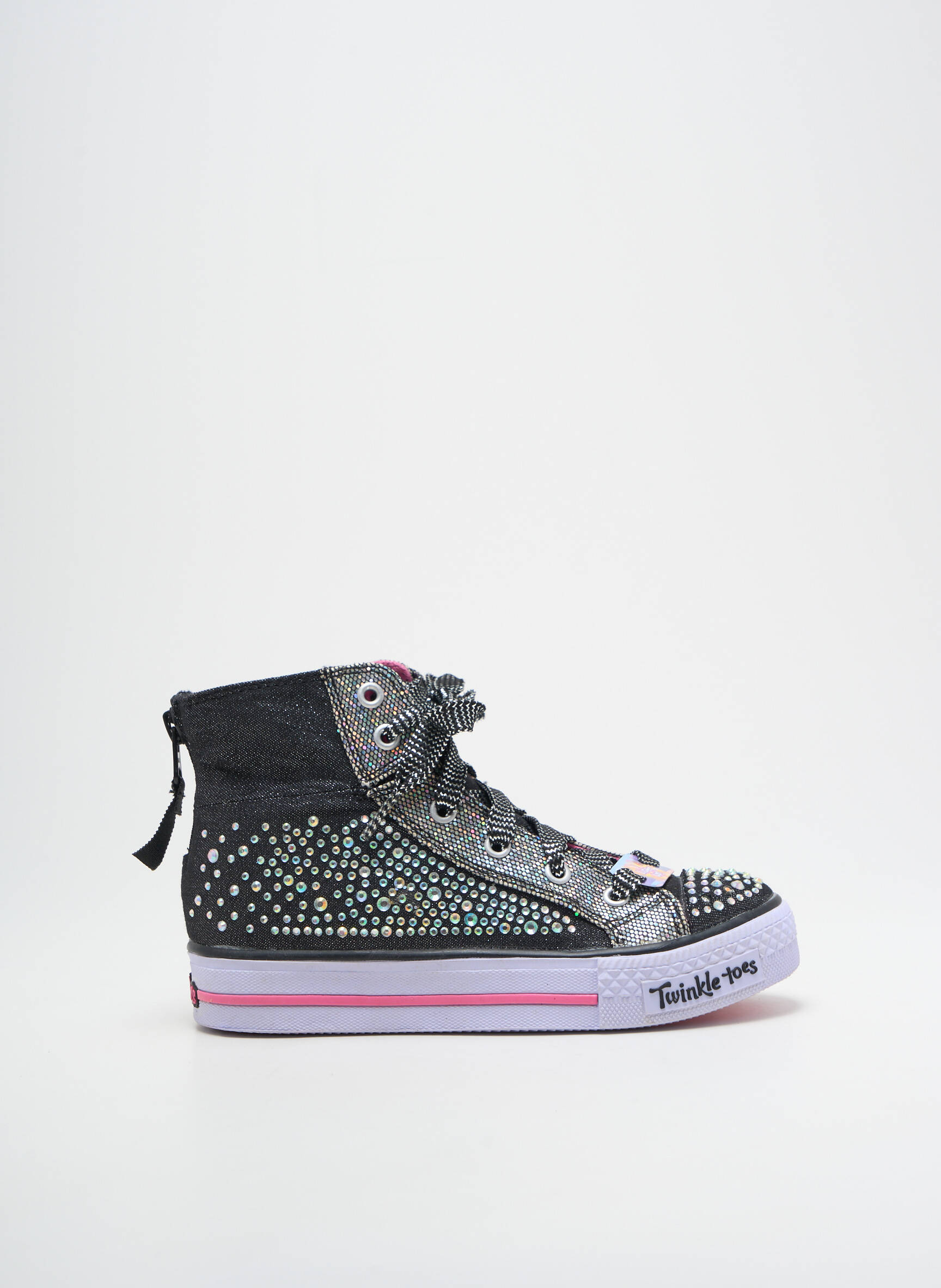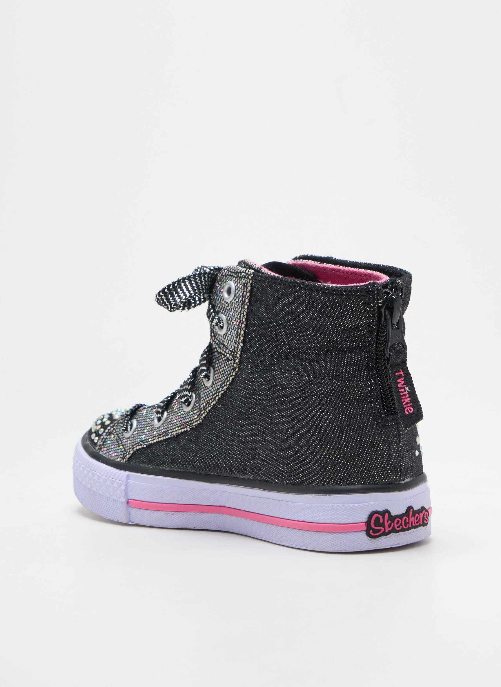 Profitez d’un super bon plan avec ces baskets SKECHERS pour fille, un modèle tendance à prix mini pour apporter une touche de fantaisie au quotidien grâce à son effet jean noir parsemé de strass brillants et ses détails ludiques comme l’inscription colorée sur la semelle et le zip arrière pratique, le tout sans compromis sur le style et le confort.