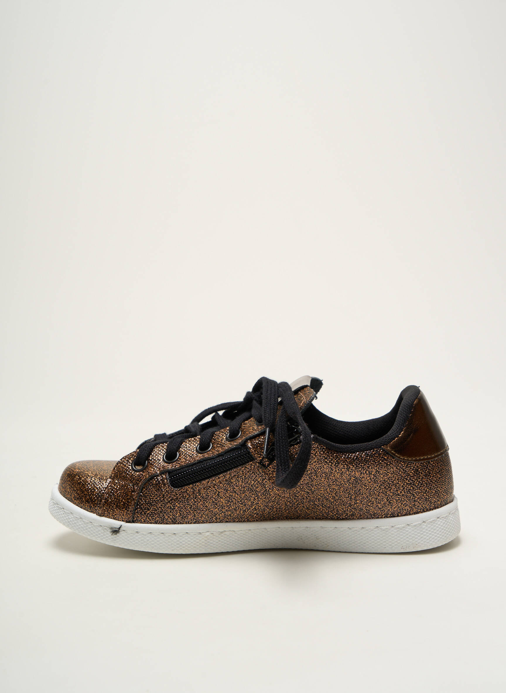Profitez d’un super bon plan avec ces baskets VICTORIA pour fille, une belle occasion d’apporter une touche tendance à petit prix. Leur finition pailletée bronze et leurs lacets noirs offrent un look unique et lumineux qui s'accorde facilement à toutes les tenues, tandis que la semelle blanche assure un confort optimal pour une utilisation quotidienne. C’est le choix parfait pour allier style, originalité et économies.