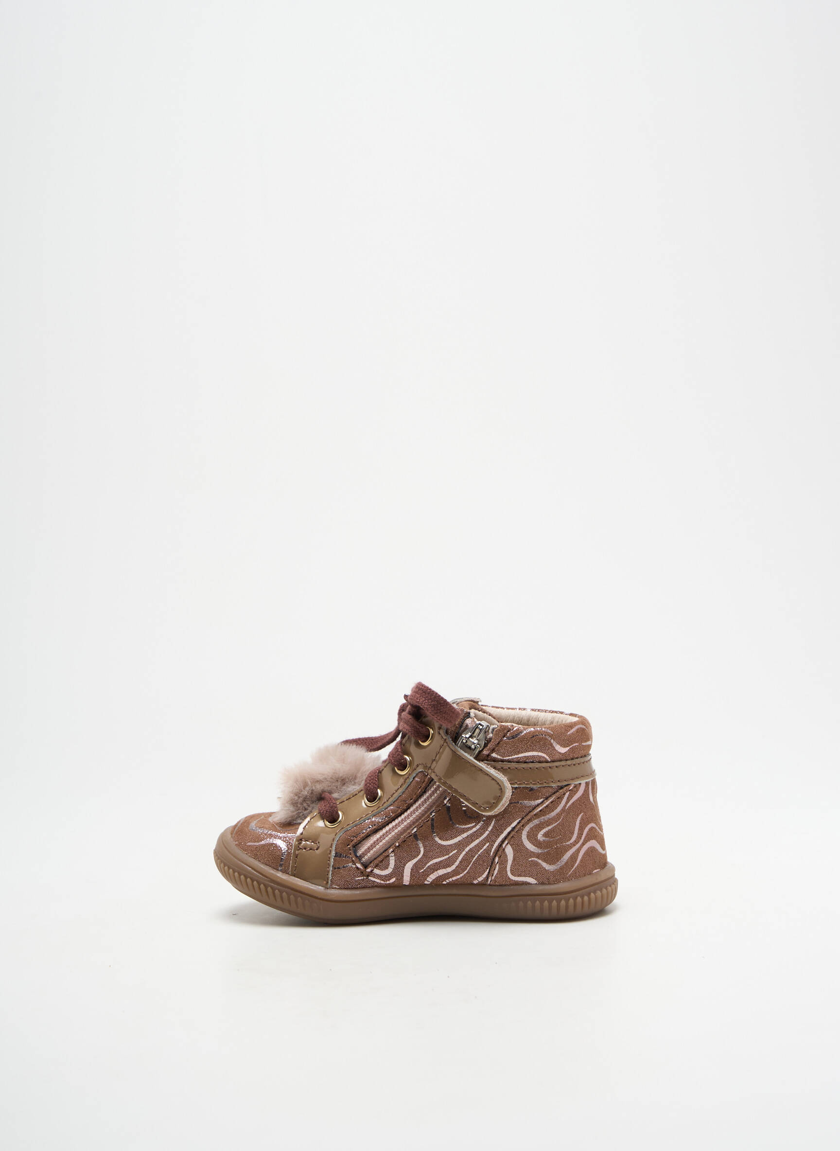 Profitez d’une belle opportunité pour chausser votre fille avec style sans vous ruiner grâce à ces bottillons GBB à prix mini. Avec leur jolie couleur marron réchauffée par des motifs délicats, une finition brillante et un pompon tout doux sur le dessus, ils allient parfaitement confort, praticité et touche de fantaisie tendance. Fermeture latérale zippée pour un enfilage facile et lacets pour ajuster au mieux, ces bottillons sont le choix malin pour accompagner tous les looks de saison à petit prix.
