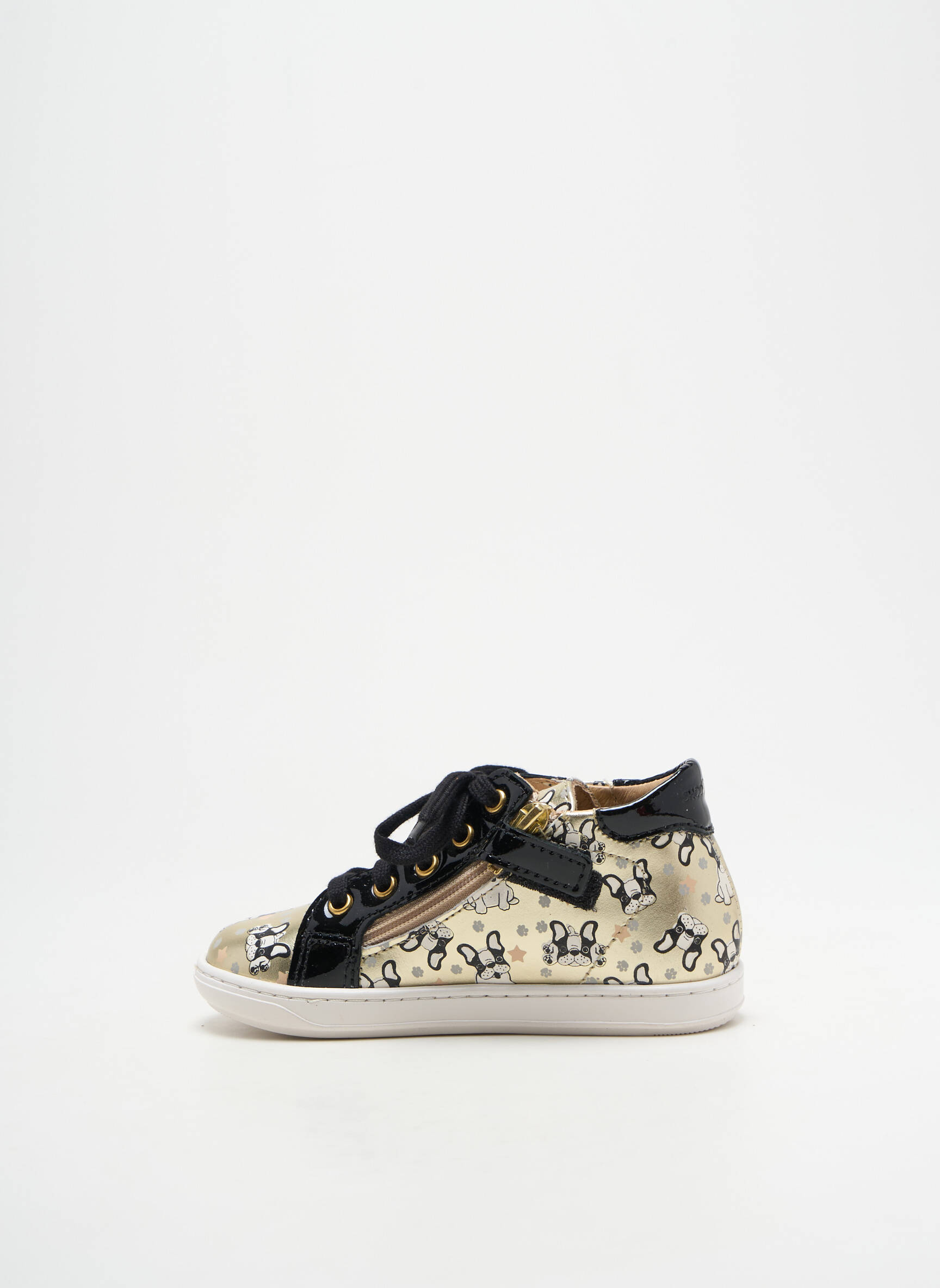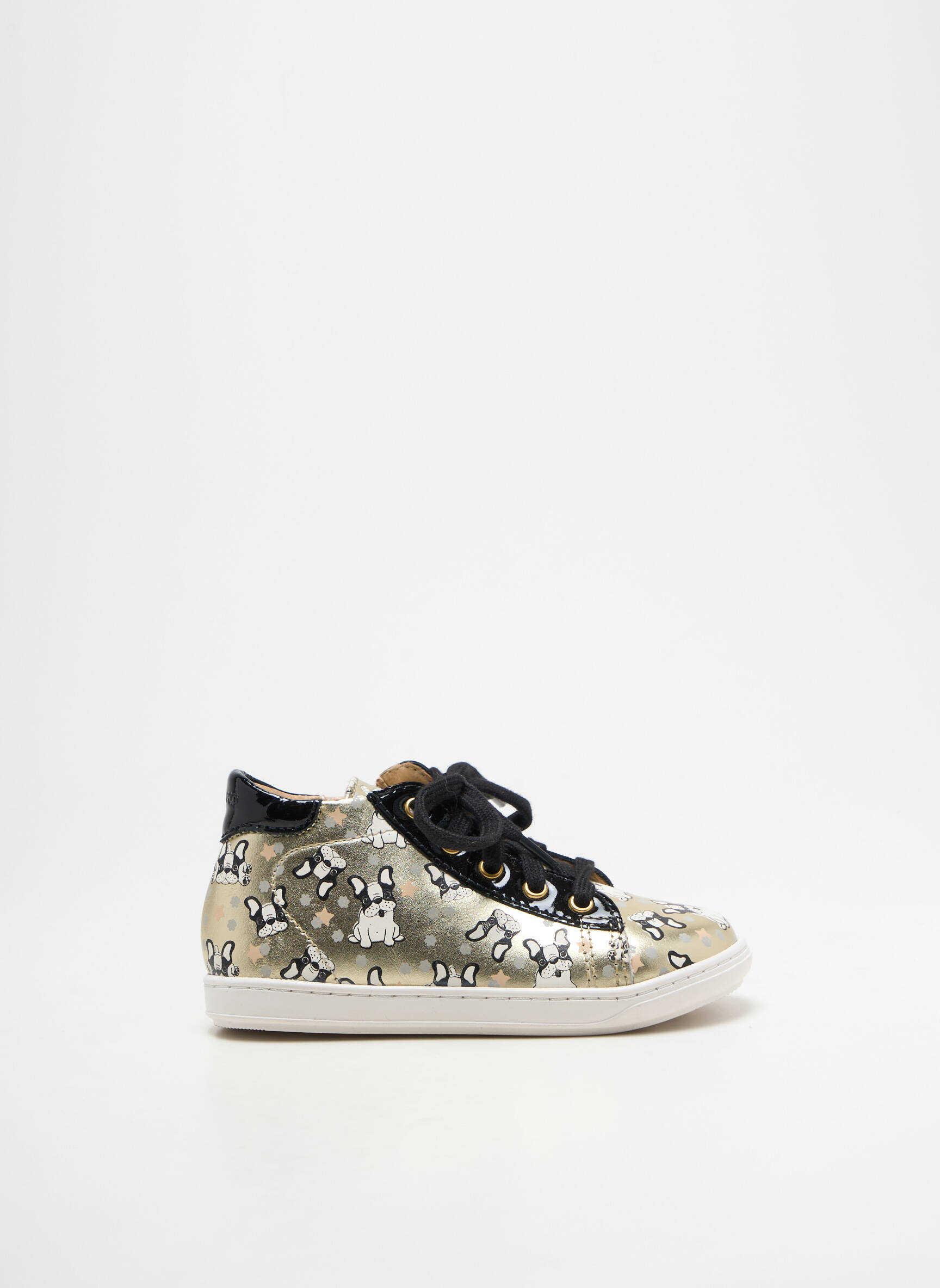 Craquez pour ces bottillons de la marque SHOO POM pour fille, un vrai bon plan pour ajouter une touche originale et pétillante à petit prix. Le motif ludique sur fond doré et la finition brillante font de cette paire un modèle unique qui plaira aux enfants comme aux parents soucieux de faire des économies sans compromis sur le style. Les lacets noirs contrastants et la semelle confortable accompagnent le look fun de cette chaussure, parfaite pour sublimer toutes les tenues du quotidien.