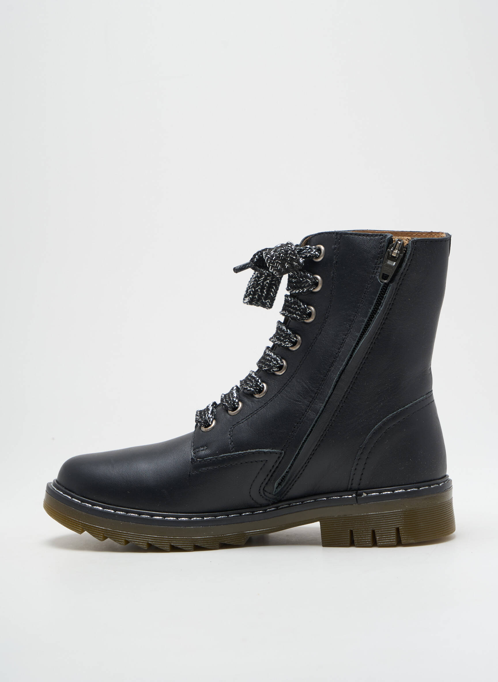 Craquez pour ces bottines POM D'API pour fille à prix mini, parfaites pour allier style et économies. Leur design moderne avec une tige montante noire, des œillets métalliques et des lacets pailletés apporte une touche tendance à n’importe quelle tenue, tandis que la semelle épaisse assure un excellent confort au quotidien. Profitez de ce bon plan et faites plaisir sans vous ruiner avec un modèle aussi pratique qu’élégant.