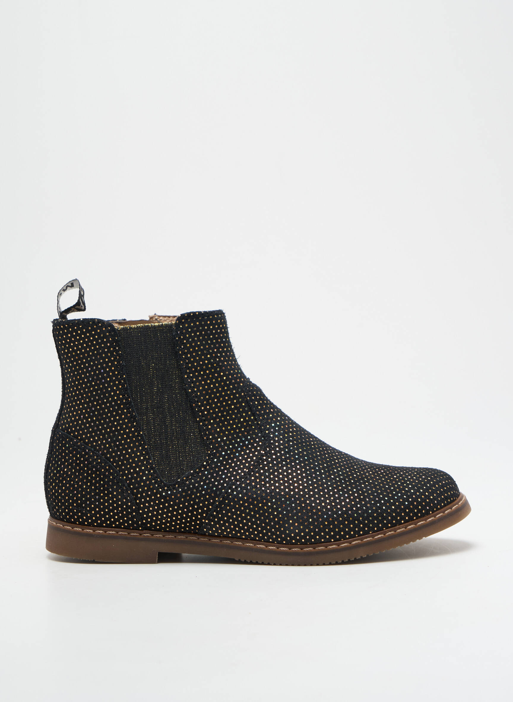 Profitez d’une offre exceptionnelle sur ces bottines POM D’API pour fille, parfaites pour allier style et économies. Avec leur allure chic et moderne, ces boots noires sont sublimées par une finition à petits motifs dorés qui capte la lumière tout en restant élégante et facile à porter au quotidien. La large bande élastiquée sur le côté assure un enfilage rapide et confortable, tandis que la semelle plate promet un maintien optimal pour toutes les aventures. Offrez à votre enfant une paire tendance et originale sans vous ruiner, idéale pour compléter toutes ses tenues avec une touche de fantaisie discrète.