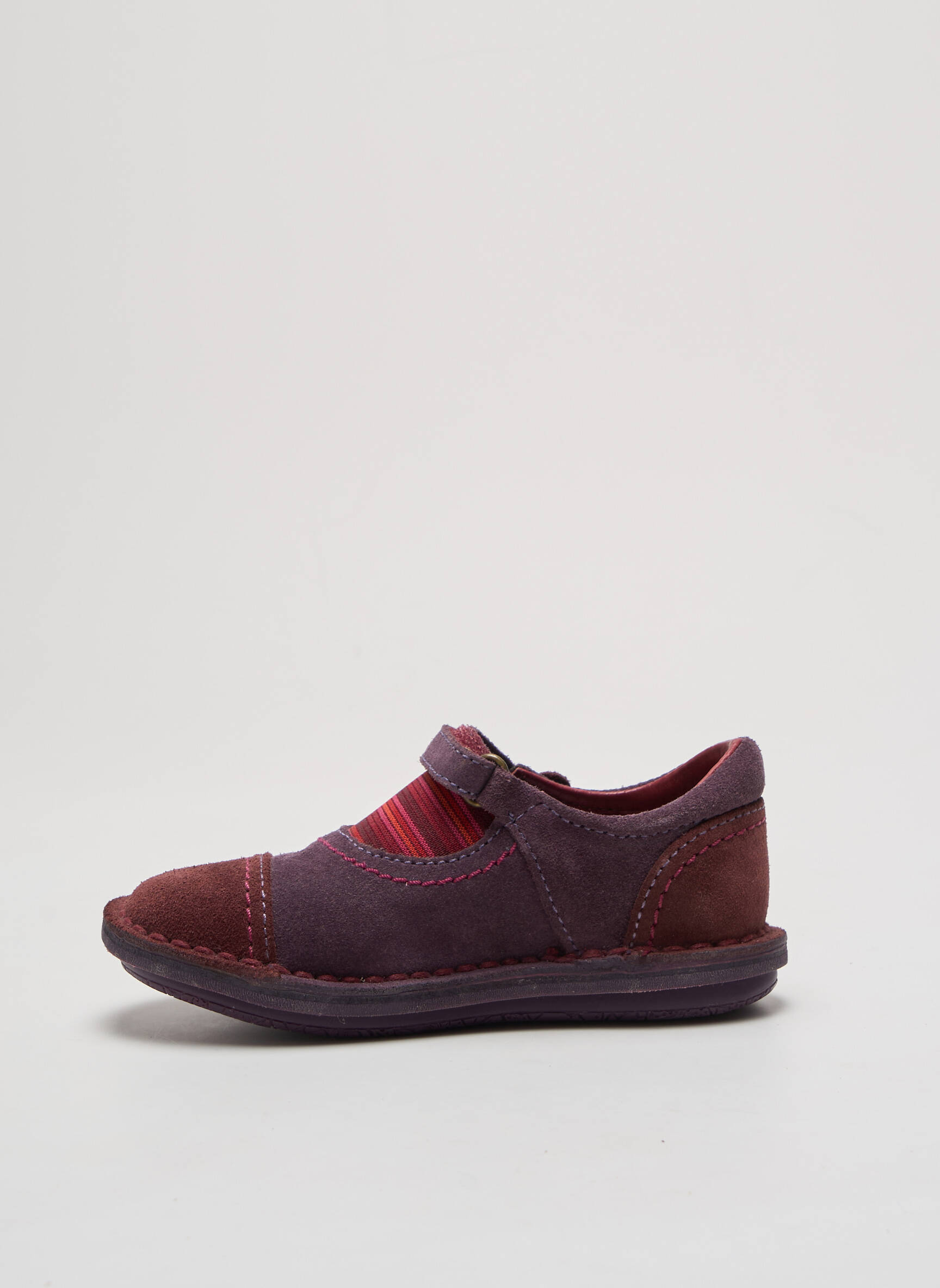 Quand l'élégance rencontre le confort, ces mocassins pour fille de la marque KICKERS révèlent toute leur subtilité grâce à leur velours violet intense rehaussé d’empiècements en suède bordeaux et d’une bride réglable ornée d’un bouton floral délicat, pour une touche à la fois féminine et ludique.