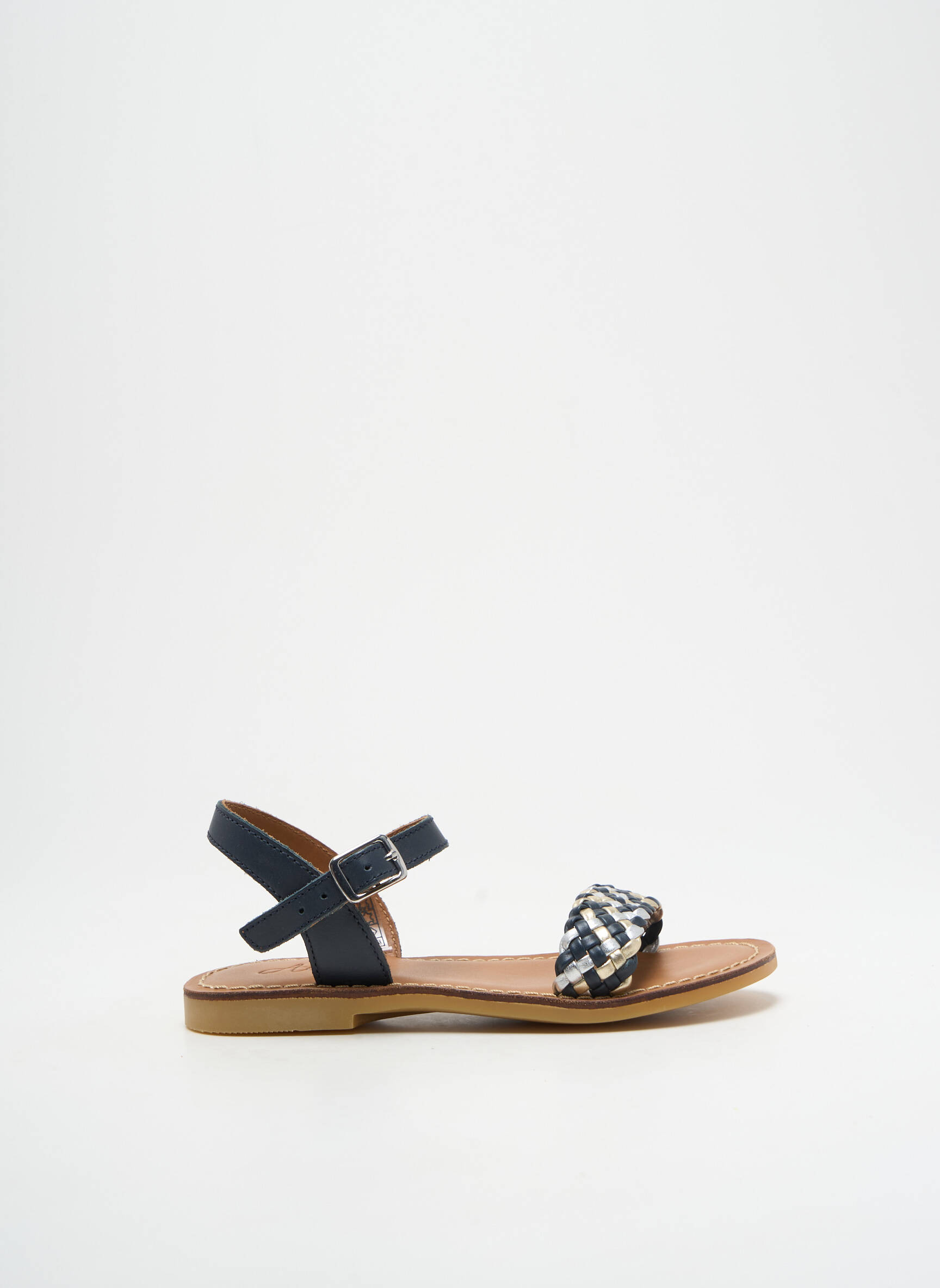 Profitez d'un véritable bon plan avec ces sandales Adolie pour fille, affichant un style tendance à petit prix et idéales pour la saison estivale. Leur bride cheville noire ajustable assure un maintien parfait tandis que l'avant du pied est sublimé par un tressage bleu et blanc, apportant une touche d'originalité facile à assortir avec toutes les tenues. Offrez à votre enfant un look chic et confortable sans vous ruiner grâce à ce modèle incontournable en déstockage.