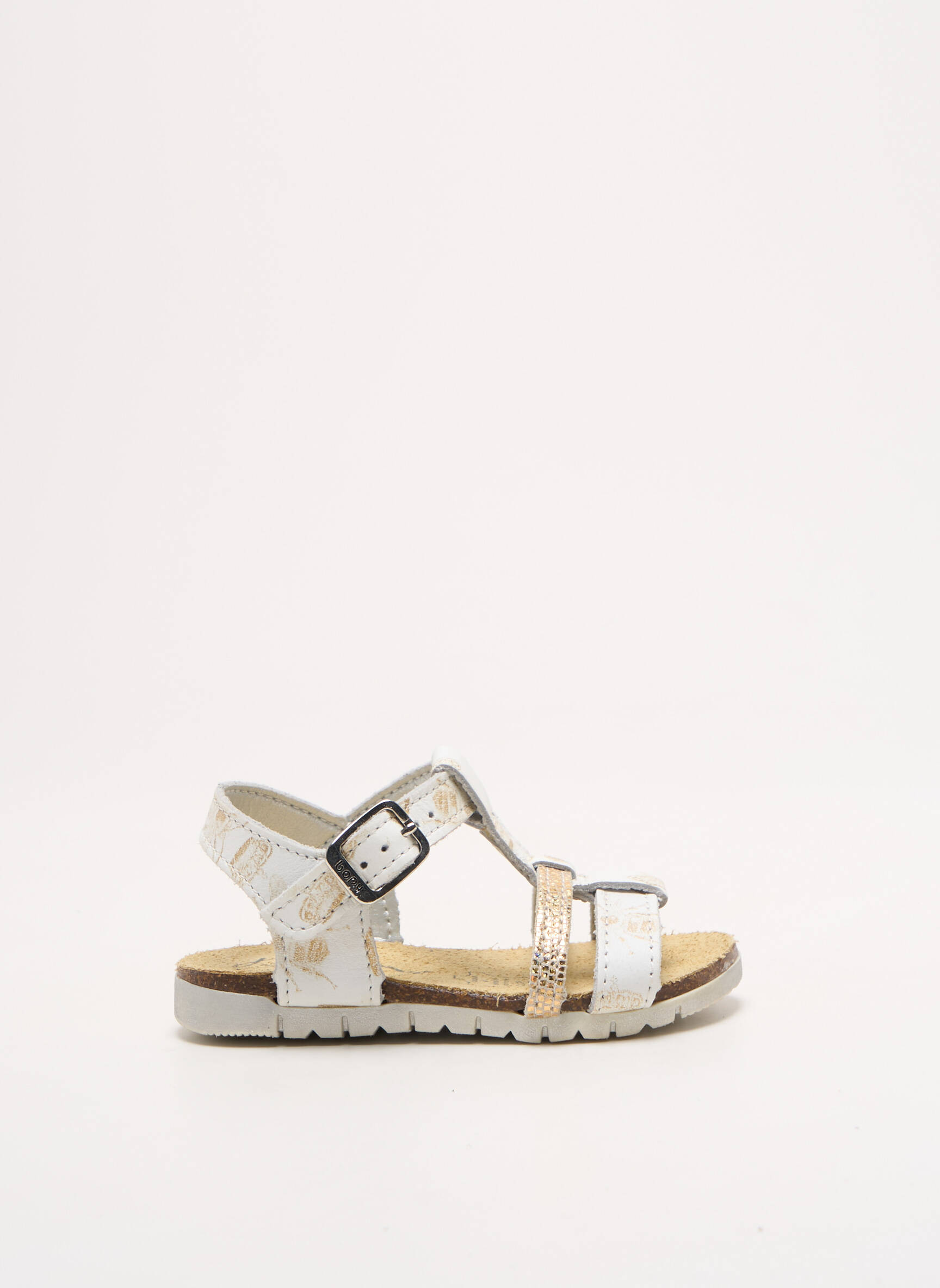 Craquez pour cette sandale BOPY pour fille, idéale pour profiter des beaux jours sans se ruiner. Son cuir effet craquelé blanc aux reflets dorés, associé à une bride pailletée, donne une touche tendance et lumineuse à toutes les tenues estivales. Grâce à son design confortable et sa semelle crantée, elle assure maintien et sécurité tout au long de la journée, le tout à un prix vraiment avantageux pour faire plaisir sans se priver.