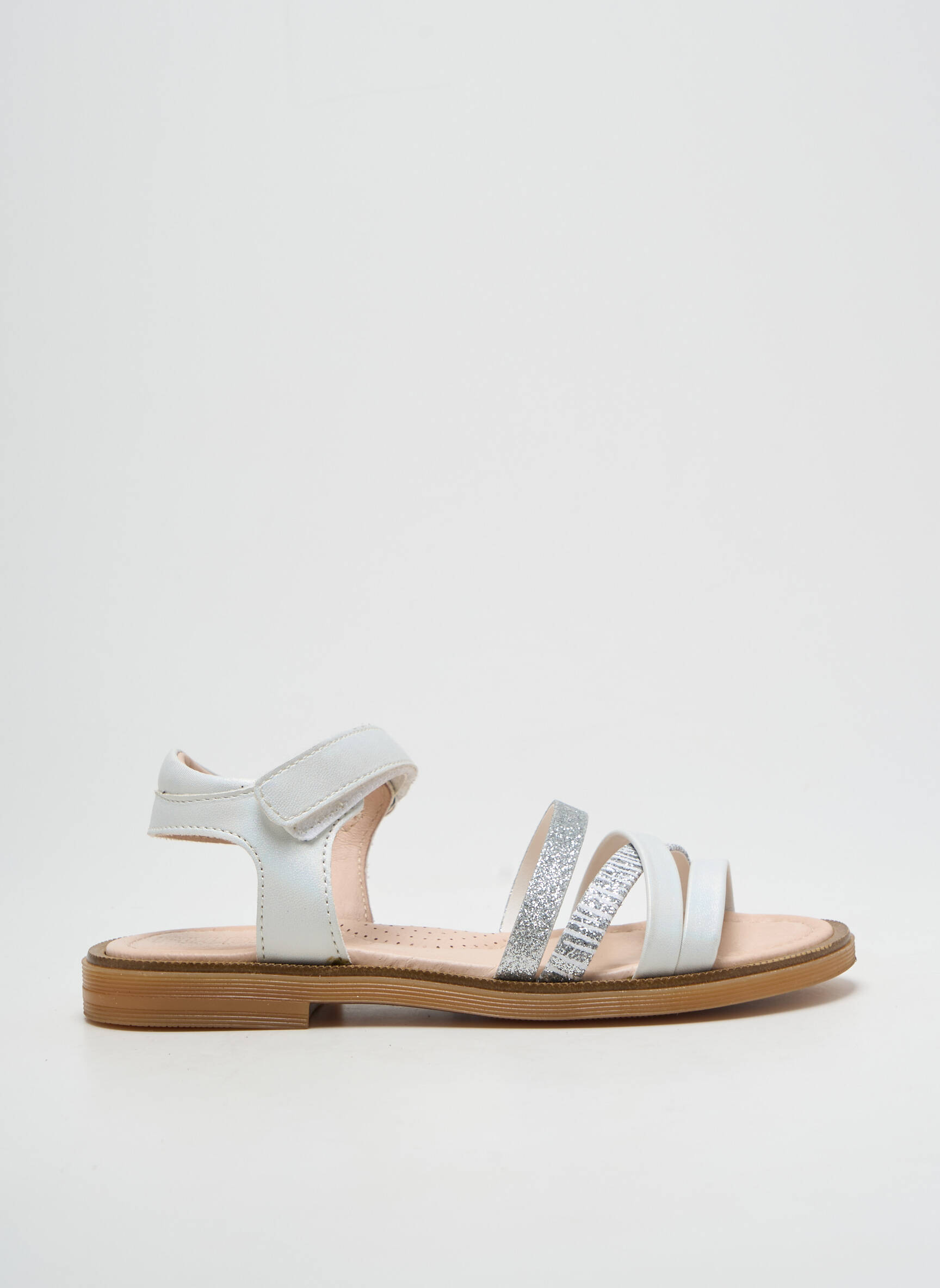Craquez pour ces sandales POLDINO pour fille, qui allient élégance et confort à prix mini, parfaites pour profiter du soleil sans se ruiner. Son style raffiné mise sur des brides blanches et argentées avec une touche irisée, offrant une tenue sûre grâce à une fermeture pratique à scratch, tandis que la semelle souple assure un vrai confort pour toutes les aventures estivales. Un choix malin pour faire plaisir tout en réalisant des économies sur une pièce tendance et facile à porter au quotidien.