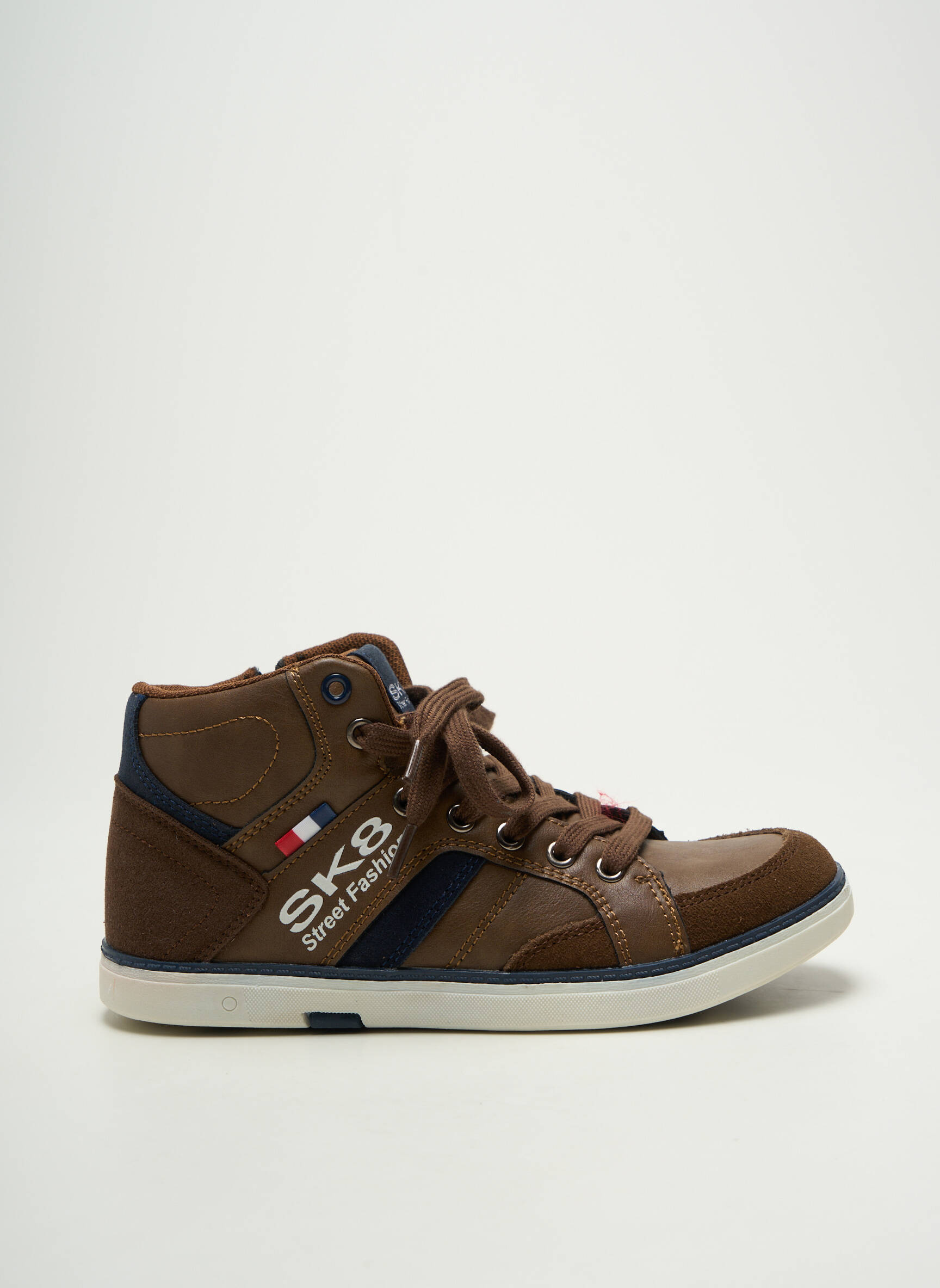 Profitez d’un bon plan avec cette basket montante SK8 pour garçon, idéale pour allier style urbain et petit prix. Sa couleur marron facile à assortir, agrémentée de détails contrastés et d’un logo tendance sur le côté, en fait un modèle polyvalent pour toutes les tenues du quotidien. Le laçage renforcé assure un maintien optimal tandis que la semelle blanche apporte une touche sportive moderne, le tout à un prix défiant toute concurrence pour faire plaisir sans se ruiner.