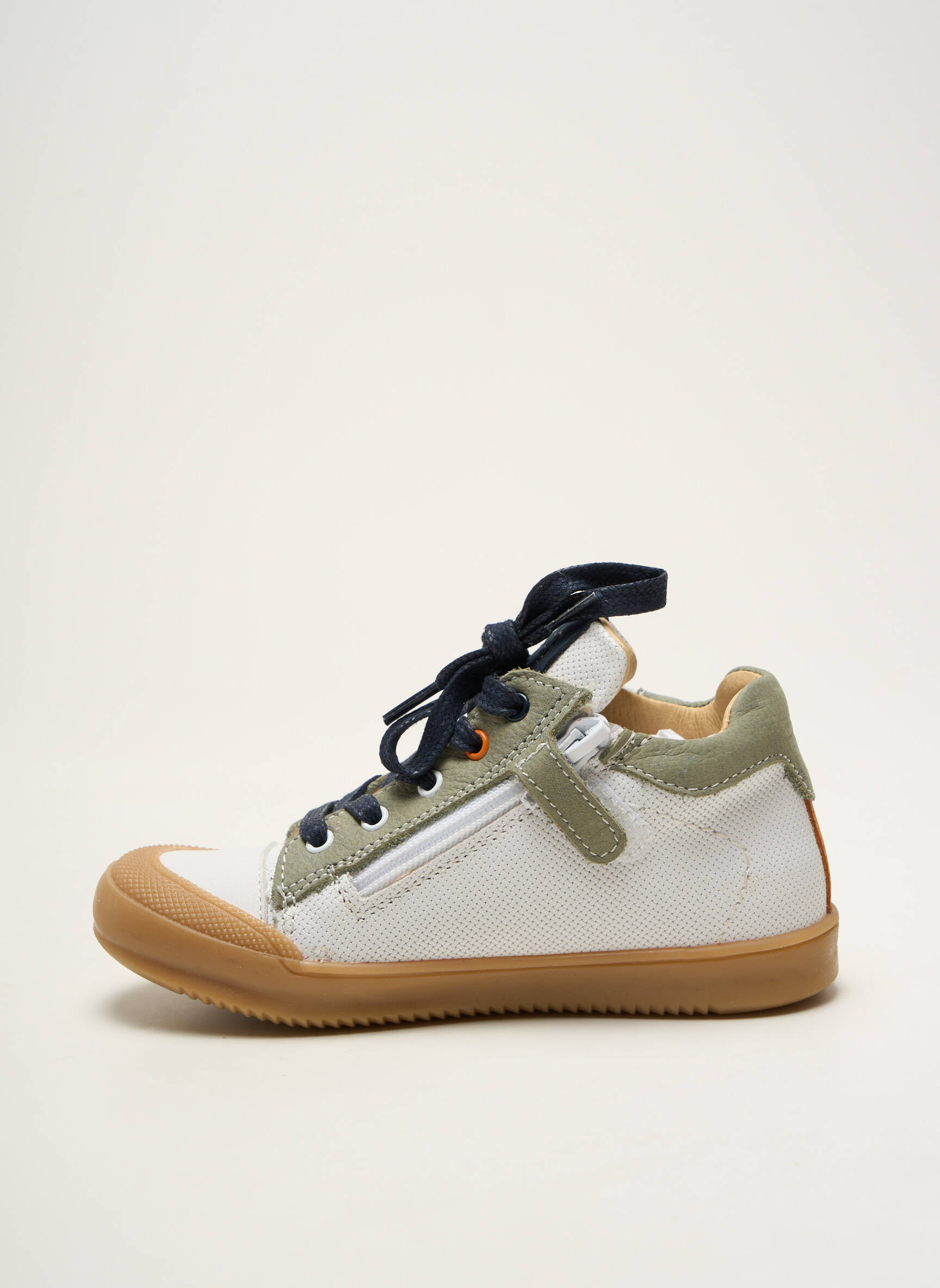 Voici le bottillon Bellamy pour garçon, une vraie bonne affaire pour les parents à la recherche de qualité sans se ruiner : avec son design alliant harmonieusement blanc, bleu marine, kaki et orange, il propose une allure moderne et dynamique tout en assurant le confort du pied, grâce à une semelle souple et un bout renforcé idéal pour les enfants actifs. L’association des matières apporte une touche tendance et le système de laçage garantit un maintien optimal, faisant de ce modèle un incontournable à petit prix pour accompagner les journées bien remplies.