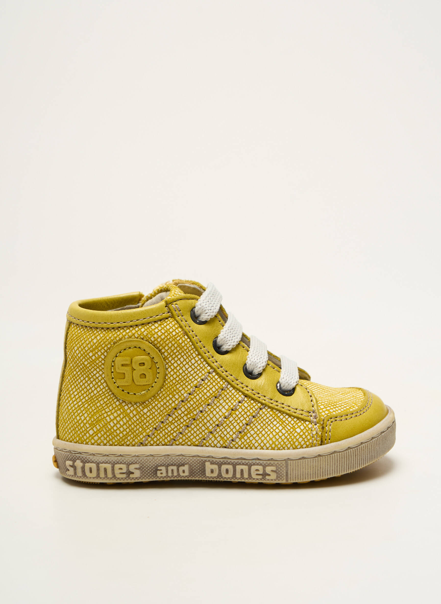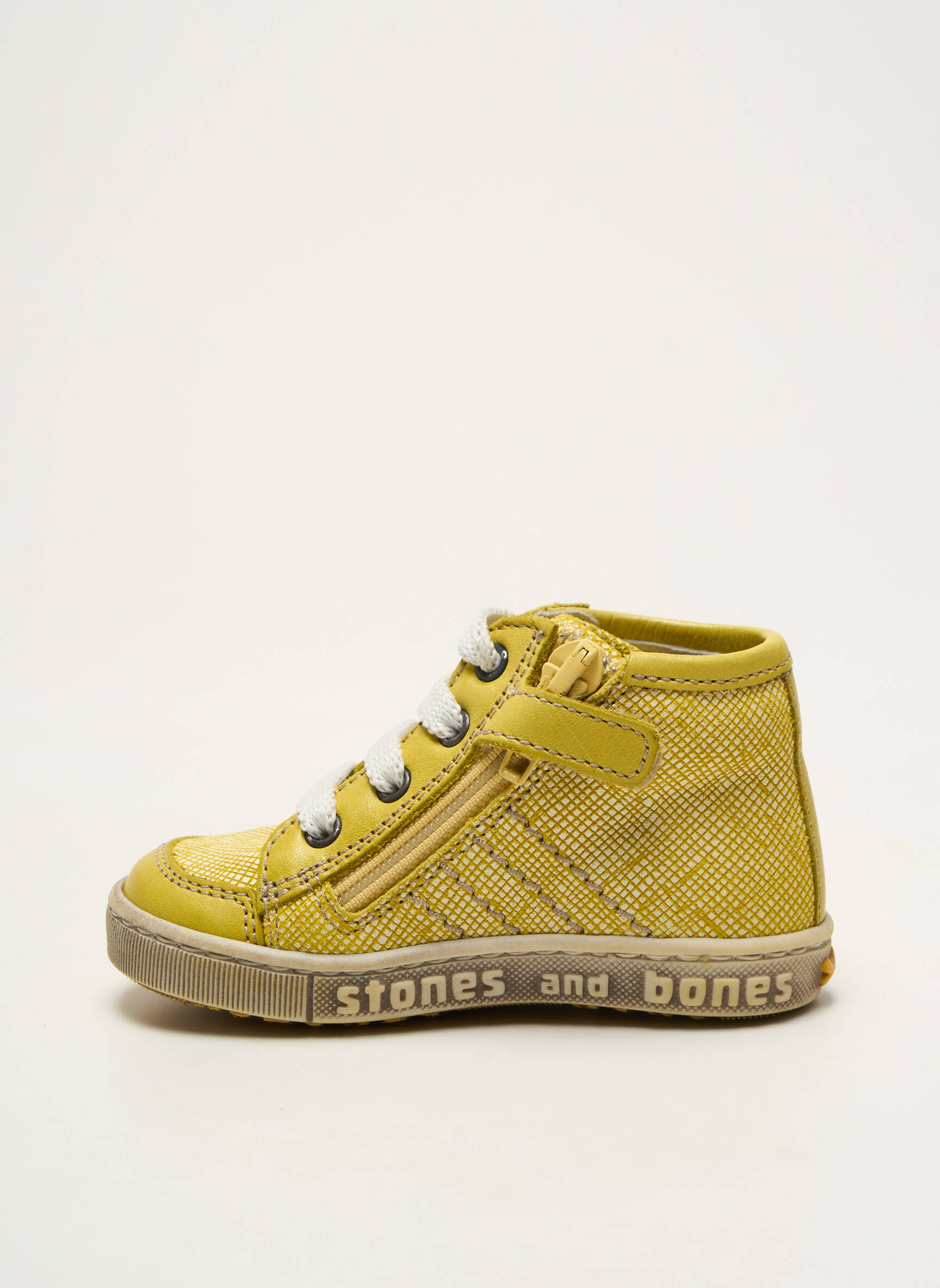 Profitez d’un vrai bon plan avec ce bottillon garçon de la marque STONES AND BONES, qui allie style tendance et confort au quotidien à prix mini. Avec sa couleur jaune vive et ses détails texturés, il apporte une touche de peps à toutes les tenues, tandis que le logo discret et la semelle siglée affirment son identité moderne. Parfait pour faire plaisir sans se ruiner, il accompagne les plus petits dans toutes leurs aventures avec une allure originale et urbaine.