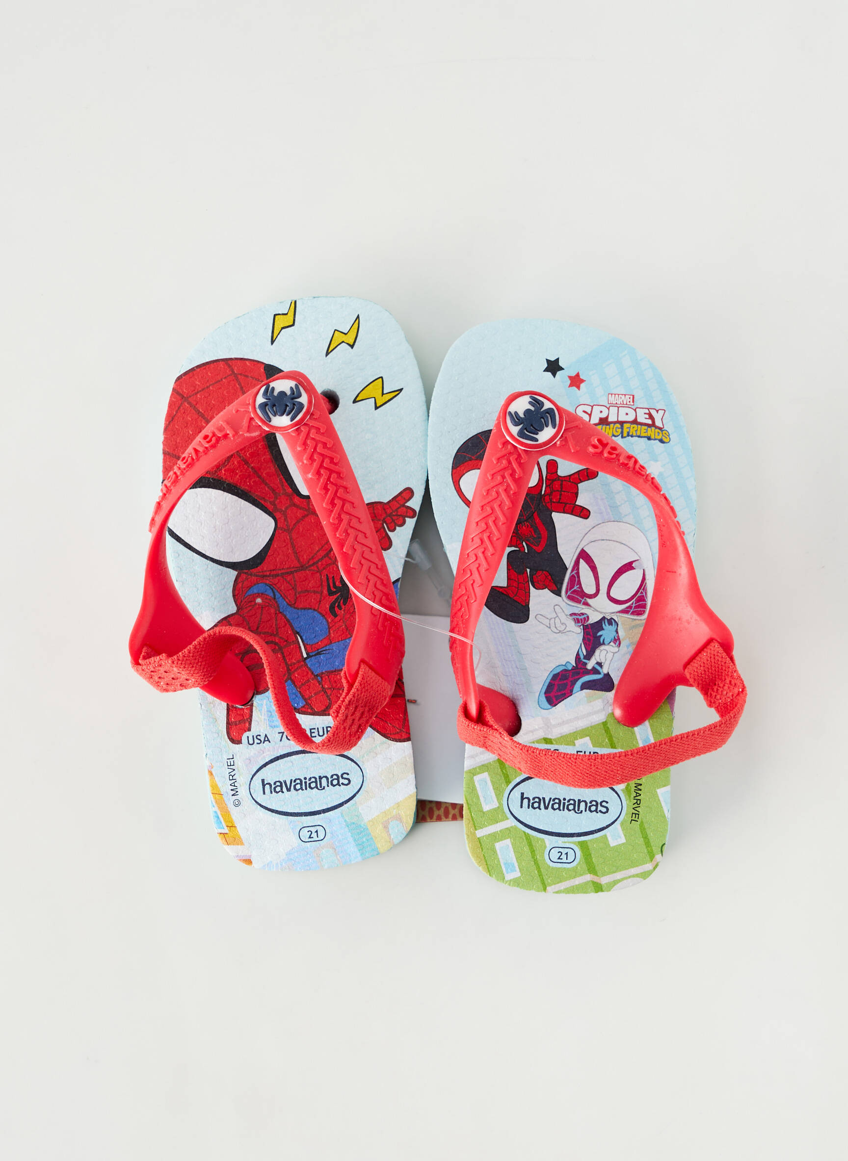 Offrez à votre garçon le confort et le style iconique des tongs Havaianas à prix mini avec ce modèle illustré aux couleurs des héros Marvel, parfait pour les fans de Spiderman. Ses brides rouges apportent une touche dynamique tout en assurant un bon maintien, tandis que l’imprimé coloré et ludique fait de chaque pas une aventure pleine d'énergie. Ces tongs sont l’allié idéal pour l’été, à la plage comme à la piscine, sans vous ruiner.