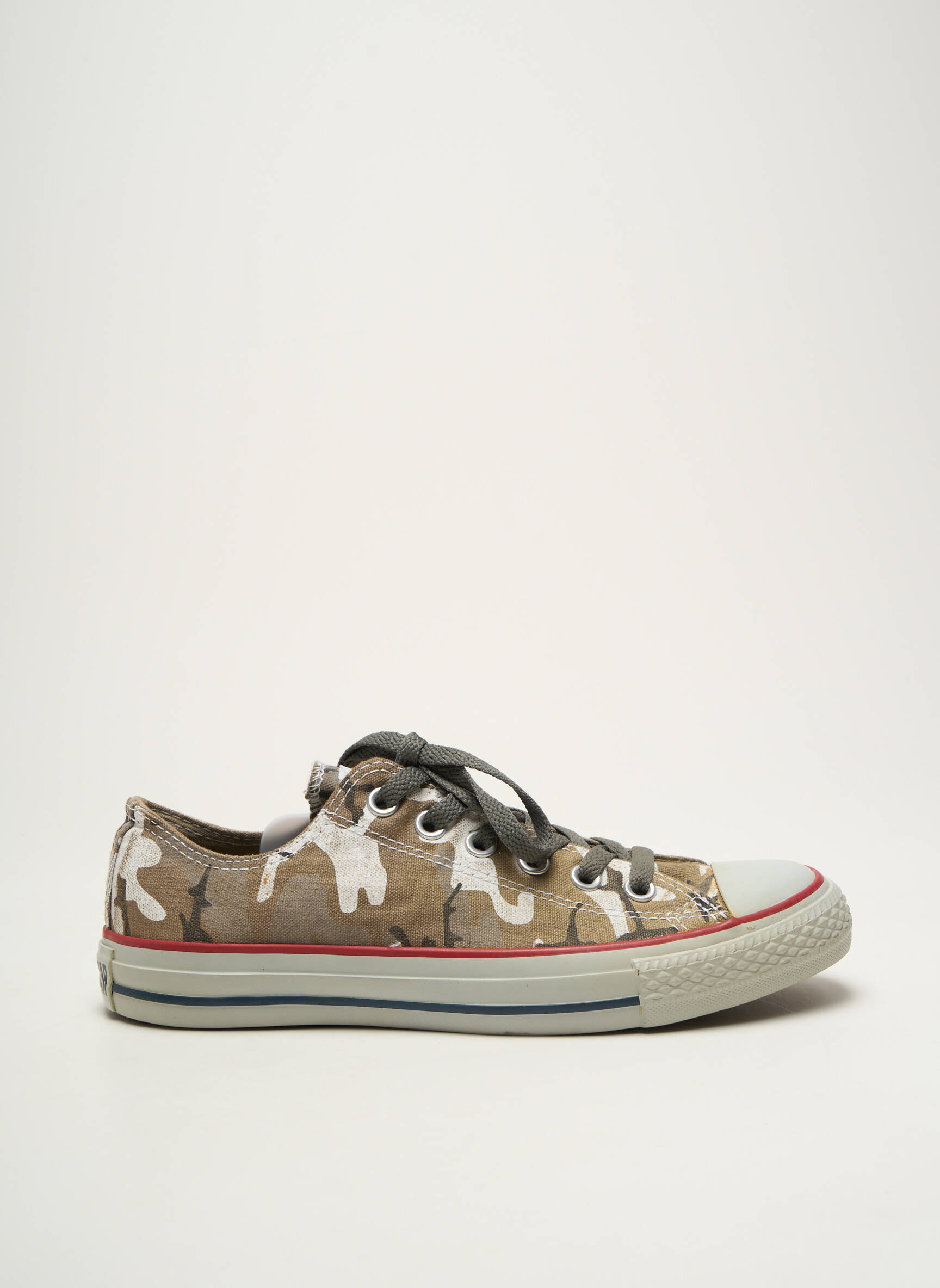 Profitez d’un bon plan sur ces baskets CONVERSE pour homme à prix mini, parfaites pour affirmer votre style sans vous ruiner. Leur design iconique revisité avec un motif camouflage et des touches de blanc et de kaki apporte une touche tendance et moderne, tandis que la semelle épaisse à liseré rouge et noir rappelle l’esprit authentique de la marque. Ces baskets allient confort et allure décontractée pour accompagner toutes vos tenues urbaines à petit prix.