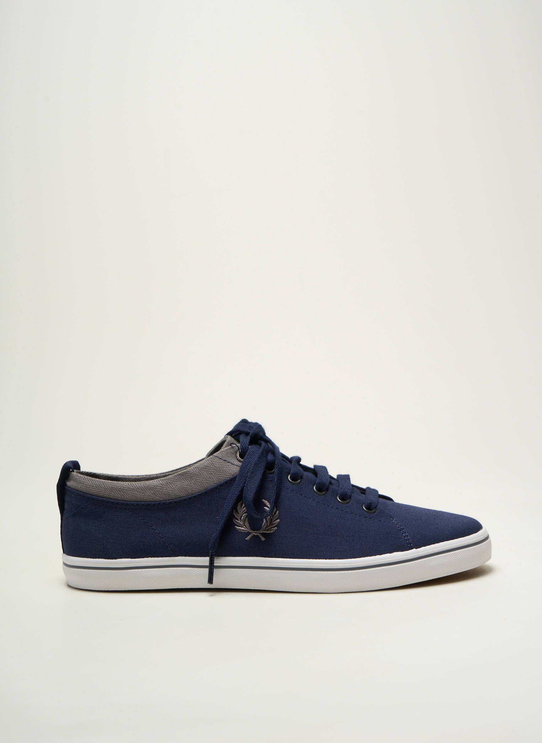 Profitez d’une véritable opportunité avec ces baskets FRED PERRY pour homme, parfaites pour allier style et économies. Leur silhouette épurée en toile bleu marine s’accorde avec une touche de gris au niveau du col, tandis que le logo iconique de la marque est discrètement brodé côté extérieur pour une finition élégante. La semelle blanche contrastée apporte une note sportive et moderne, idéale pour compléter toutes vos tenues du quotidien sans vous ruiner.