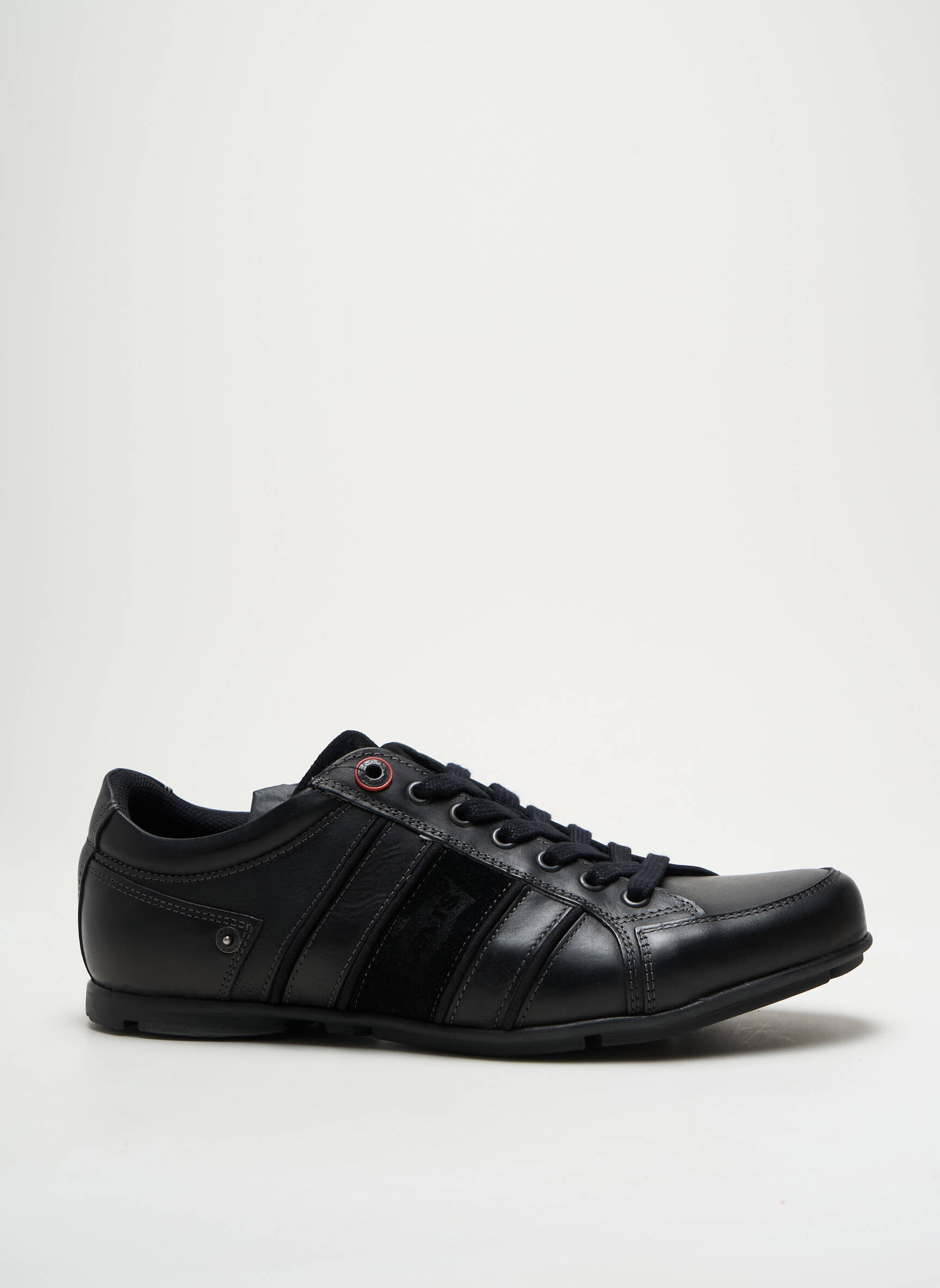 Osez l'élégance discrète avec ces baskets Levi's pour homme, qui allient subtilement un design sportif à une silhouette élégante en cuir noir lisse. Leur empeigne soigneusement travaillée présente des surpiqûres raffinées et des détails texturés apportant une touche de modernité, tandis que les lacets noirs et les œillets métalliques renforcent le caractère affirmé de cette paire. La semelle fine mais résistante assure un confort optimal et une allure sophistiquée, parfaite pour accompagner un look urbain et stylé au quotidien.