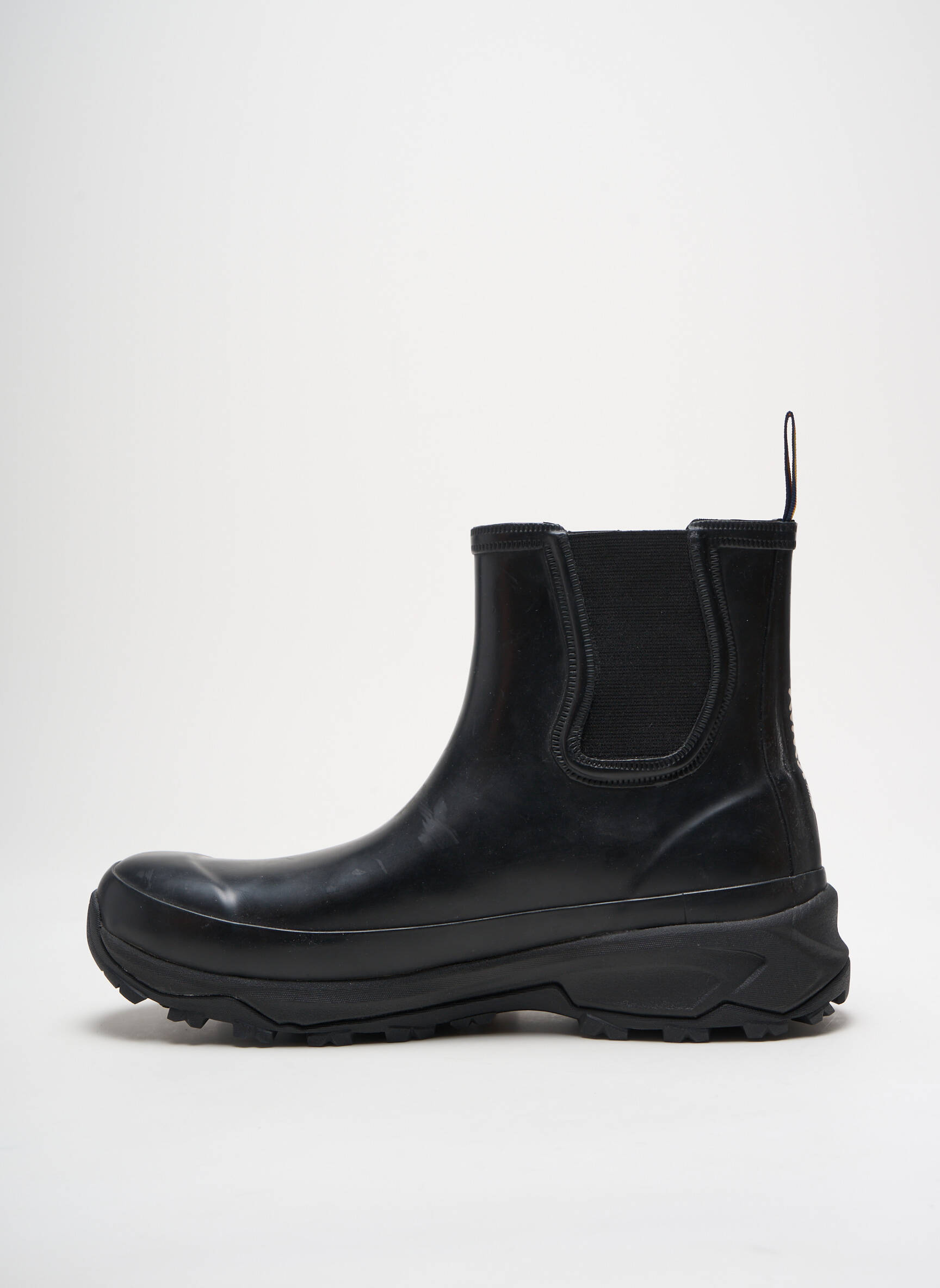 Ce n’est pas qu’une simple bottine, c’est une promesse d’aventure sous la pluie. Cette bottine KWAY pour homme se distingue par sa silhouette épurée en caoutchouc noir mat, montée sur une semelle épaisse à crampons offrant une adhérence parfaite. L'élastique latéral emblématique rappelle l’attention aux détails techniques, tandis que la tirette arrière facilite l’enfilage avec élégance. Alliant robustesse et style minimaliste, elle se porte aussi bien en milieu urbain que lors de balades sous les intempéries.