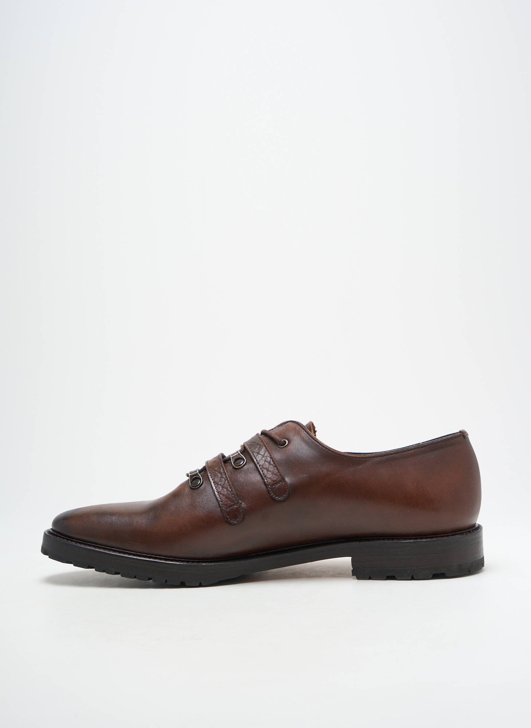 Ce modèle se marie parfaitement avec un pantalon chino pour un style urbain ou un jean brut pour un look plus décontracté. Il suffit d’ajouter une chemise cintrée et un blazer pour un rendu chic, ou opter pour un pull léger à col rond pour une allure plus simple, tout en conservant une pointe d’originalité grâce au détail des brides. Ces derbies s’associent tout aussi bien à une ceinture en cuir foncé pour harmoniser la tenue et affirmer votre sens du détail, sans effort.