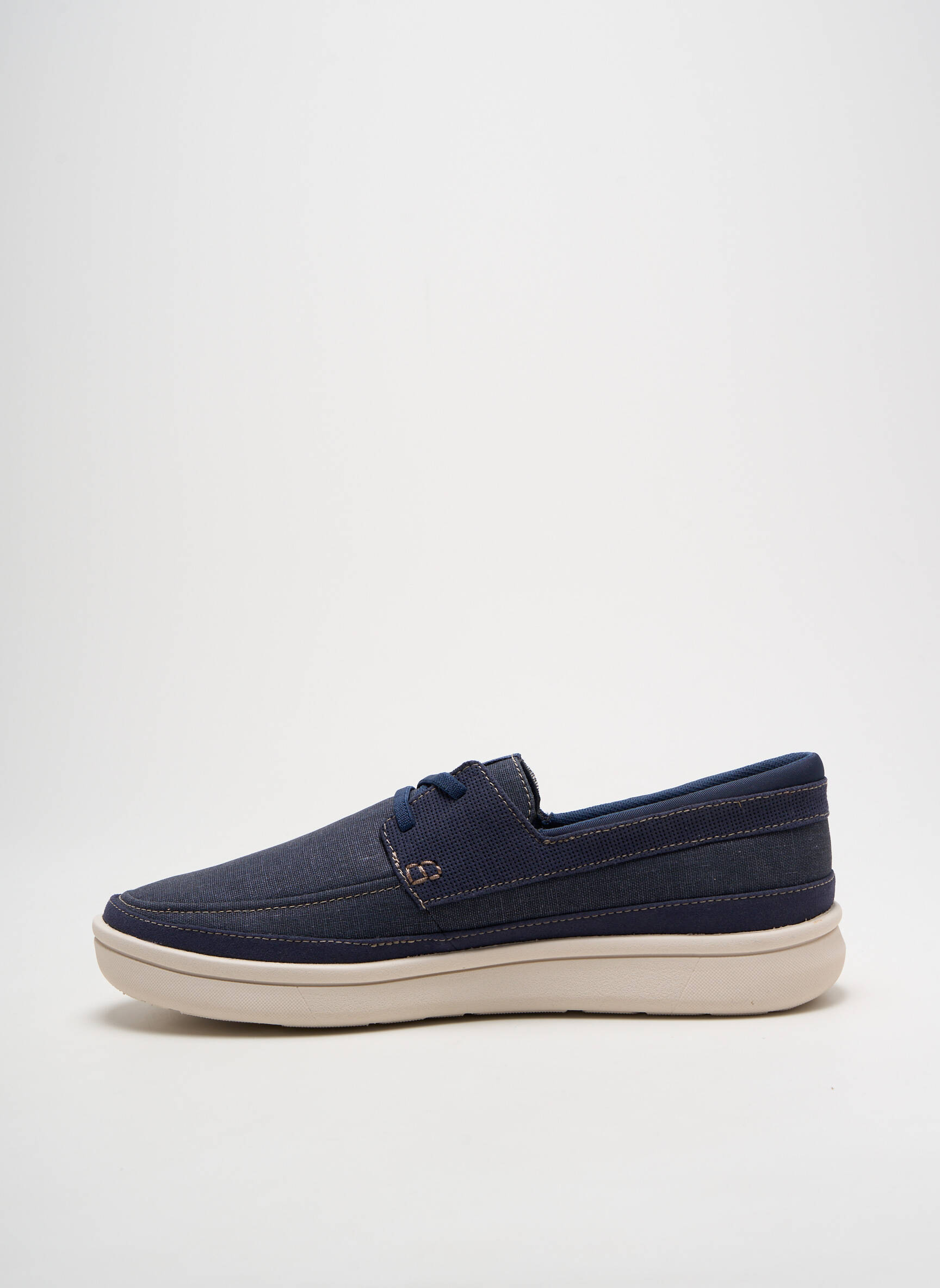 Profitez d'une véritable aubaine avec ces slip ons pour homme signés CLARKS, un modèle incontournable alliant confort et style à prix mini. Leur silhouette épurée en toile bleu marine, soulignée par des surpiqûres discrètes et une semelle blanche légère, en fait la chaussure parfaite pour accompagner toutes vos tenues du quotidien tout en vous offrant la fiabilité d’une grande marque sans vous ruiner.