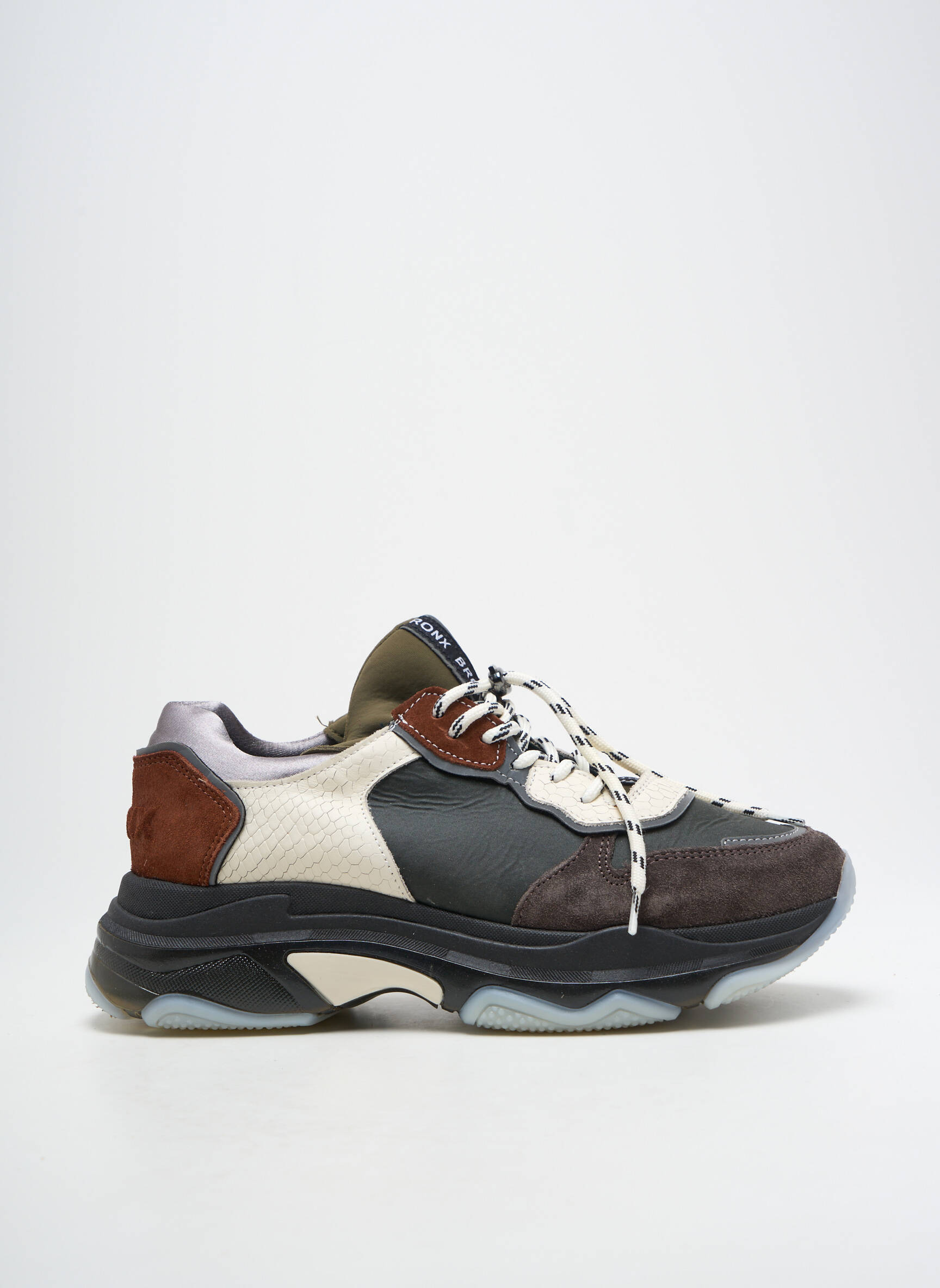 Profitez d’un bon plan incontournable avec cette basket BRONX unisexe qui séduit par son style résolument moderne et son allure unique. Sa combinaison de teintes sobres et contrastées, son jeu de matières et ses détails façon trekking offrent une touche urbaine et tendance à petit prix, parfaite pour dynamiser n’importe quelle tenue du quotidien sans se ruiner.