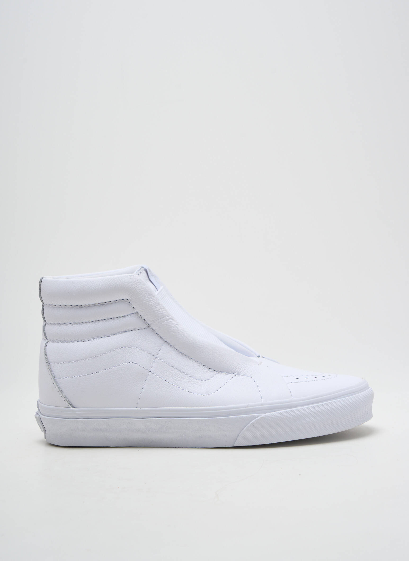 Profitez d'un bon plan exclusif avec cette paire de baskets VANS unisexe, idéale pour compléter votre collection sans vous ruiner. Ce modèle montants tout blanc séduit par son look épuré et ultra moderne, avec une tige matelassée qui apporte un maximum de confort. Les détails surpiqués typiques de la marque ajoutent une touche de style discret, tandis que la semelle épaisse assure une bonne tenue au quotidien. Voici l'occasion parfaite de s'offrir une basket tendance à prix déstockage, polyvalente et facile à assortir avec toutes vos tenues.