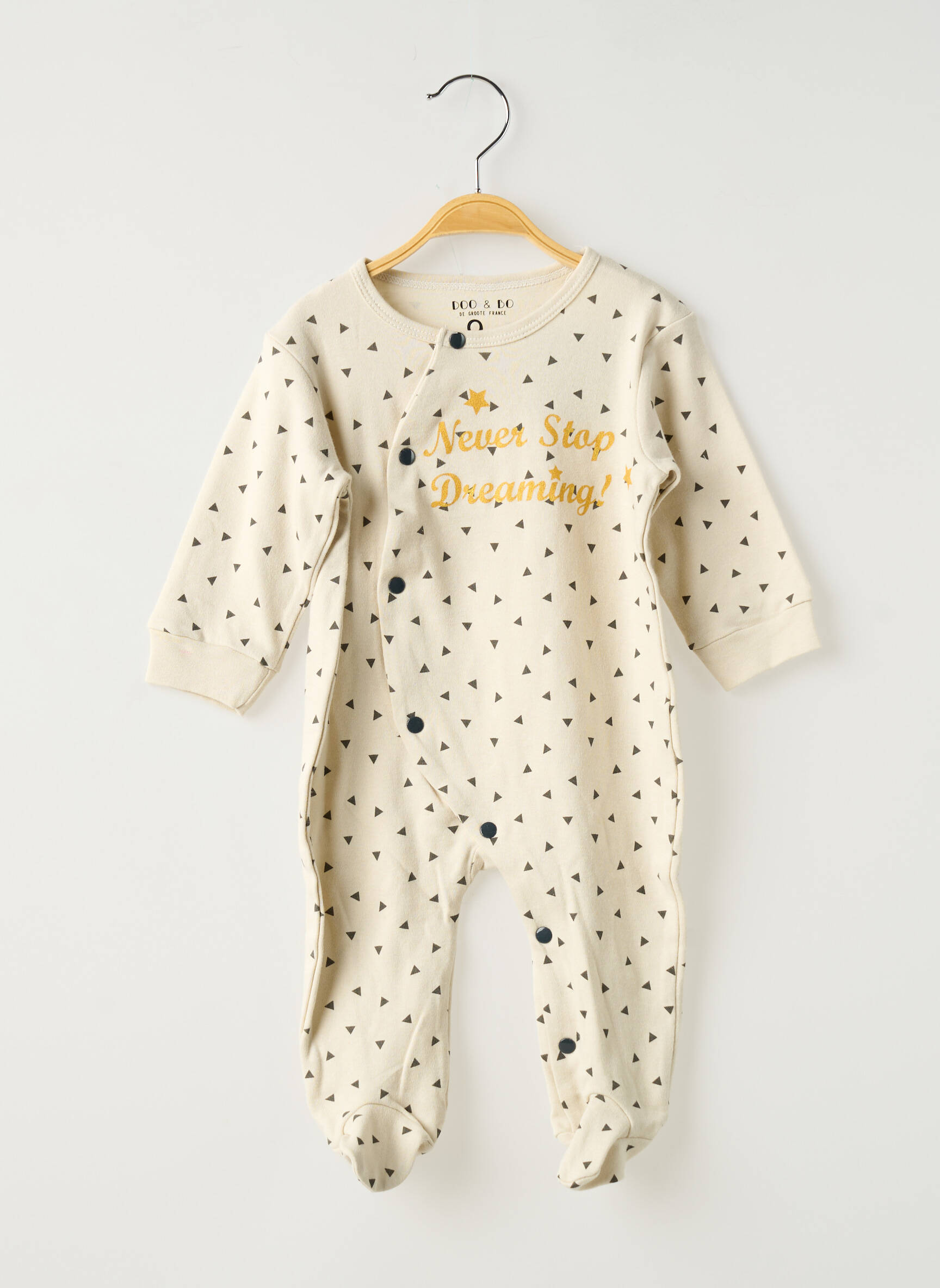 Offrez à votre enfant le plaisir de nuits tout en douceur sans vous ruiner avec ce pyjama DOO & BO à prix mini, idéal pour faire des économies sans compromis sur le style. Avec son coloris crème lumineux parsemé de petits motifs noirs et son message inspirant "Never Stop Dreaming!" en lettres dorées, il apporte une touche de fantaisie et de chaleur à la garde-robe de nuit. Pratique avec son ouverture à boutons sur le devant, il enveloppe votre enfant de confort tout en étant facile à enfiler. Saisissez ce bon plan pour allier qualité, mignonnerie et petits prix !