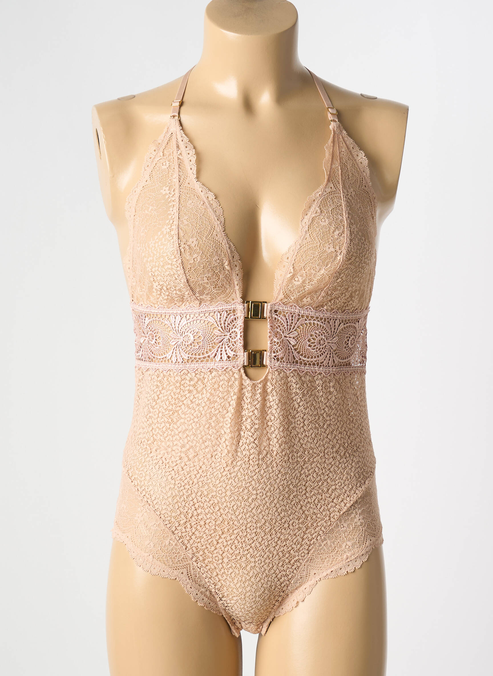 Profitez d’un bon plan irrésistible avec ce bodies lingerie AUBADE pour femme, synonyme d’élégance à prix mini. Ce modèle séduit par sa délicate dentelle nude, sa coupe flatteuse et ses détails raffiné, avec une bande ajourée qui structure la taille et deux jolis anneaux dorés pour une touche sophistiquée. Idéal pour celles qui rêvent d’allier chic et économie sur une pièce signature de la lingerie haut de gamme.