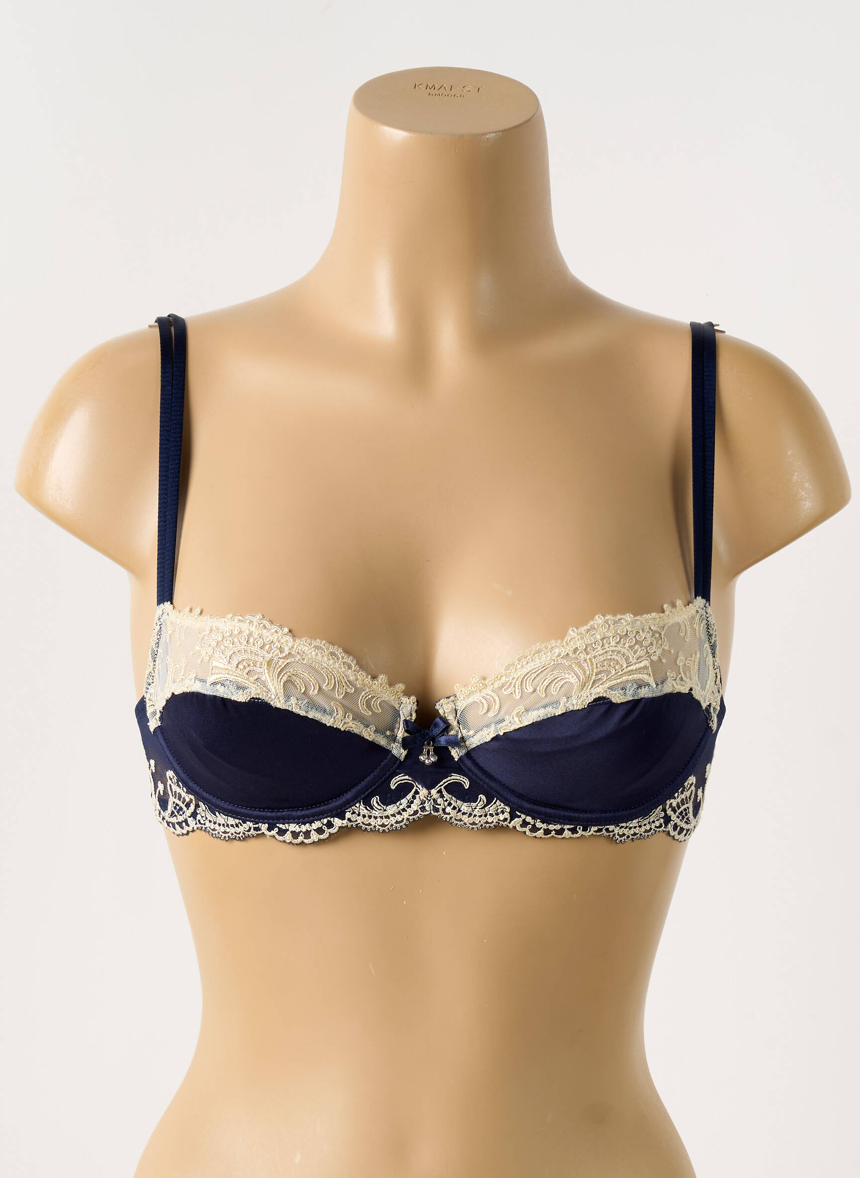 Craquez pour l’élégance à prix tout doux avec ce soutien-gorge signé Lise Charmel, un bon plan à ne pas laisser passer pour sublimer votre lingerie sans vous ruiner. Ce modèle sophistiqué mélange une base bleu nuit intense avec de délicats empiècements de dentelle ivoire sur le haut des bonnets et le dessous, offrant un contraste raffiné et luxueux. Les bretelles fines ainsi que les petits détails de finition apportent la touche de féminité qui fait toute la différence, parfait pour allier confort et élégance au quotidien tout en réalisant de belles économies.
