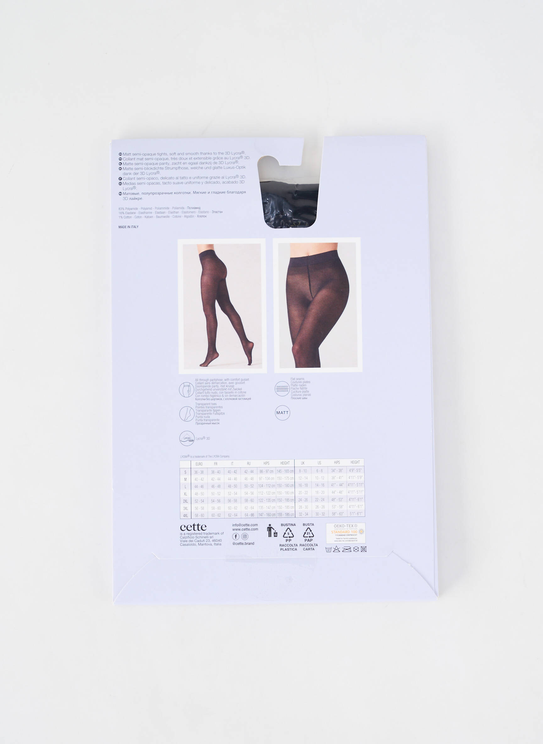 - Composition : 83 % Polyamide, 16 % Elasthane, 1 % Coton