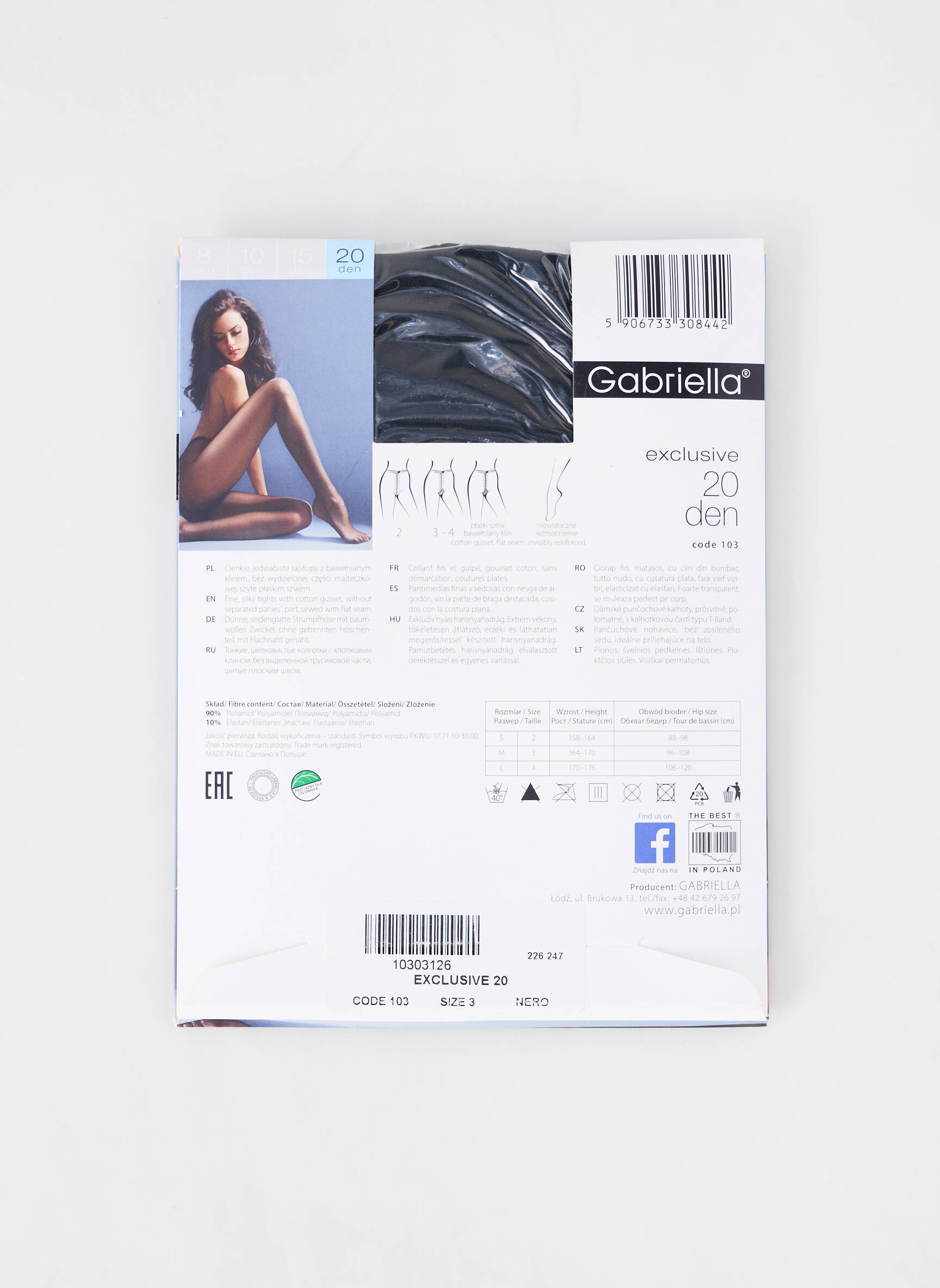 - Composition : 90 % Polyamide, 10 % Elasthane