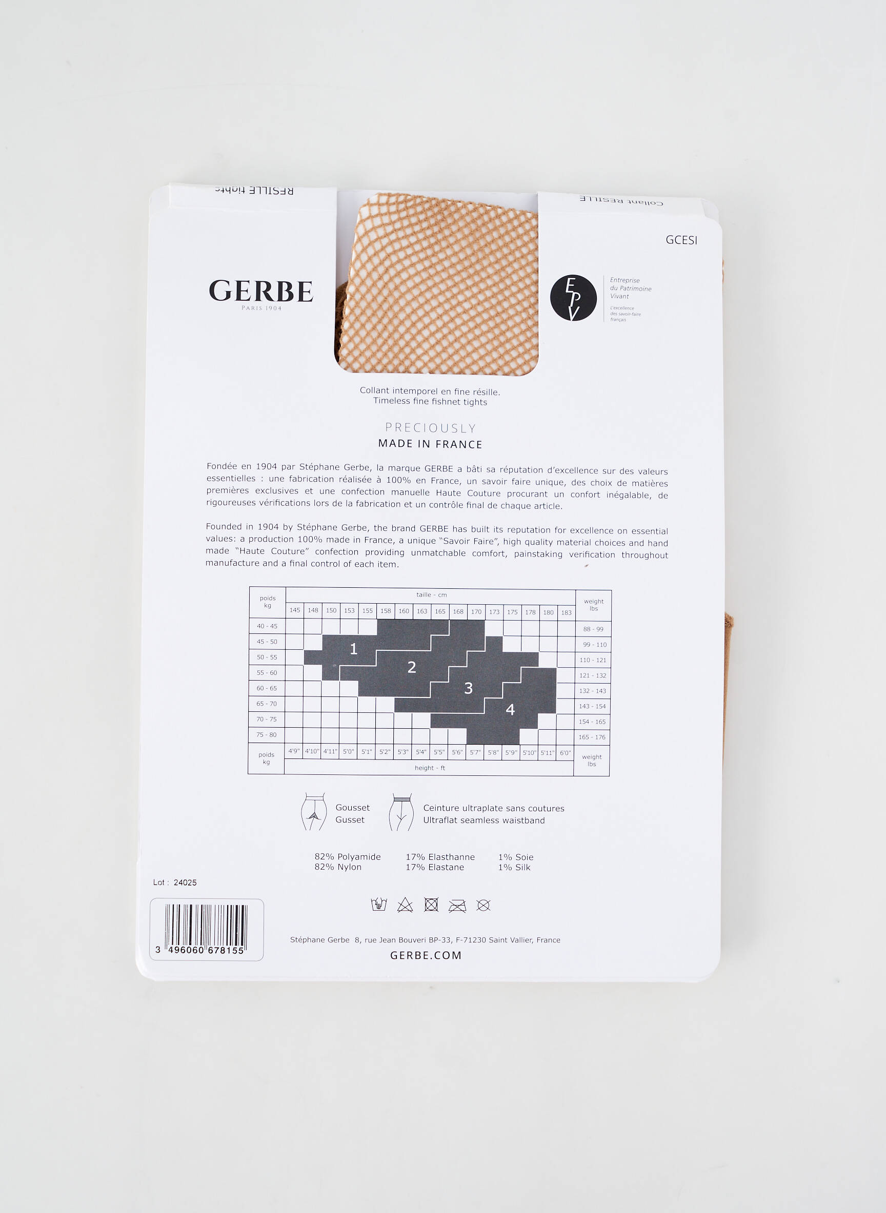 - Composition : 82 % Polyamide, 17 % Elasthane, 1 % Soie