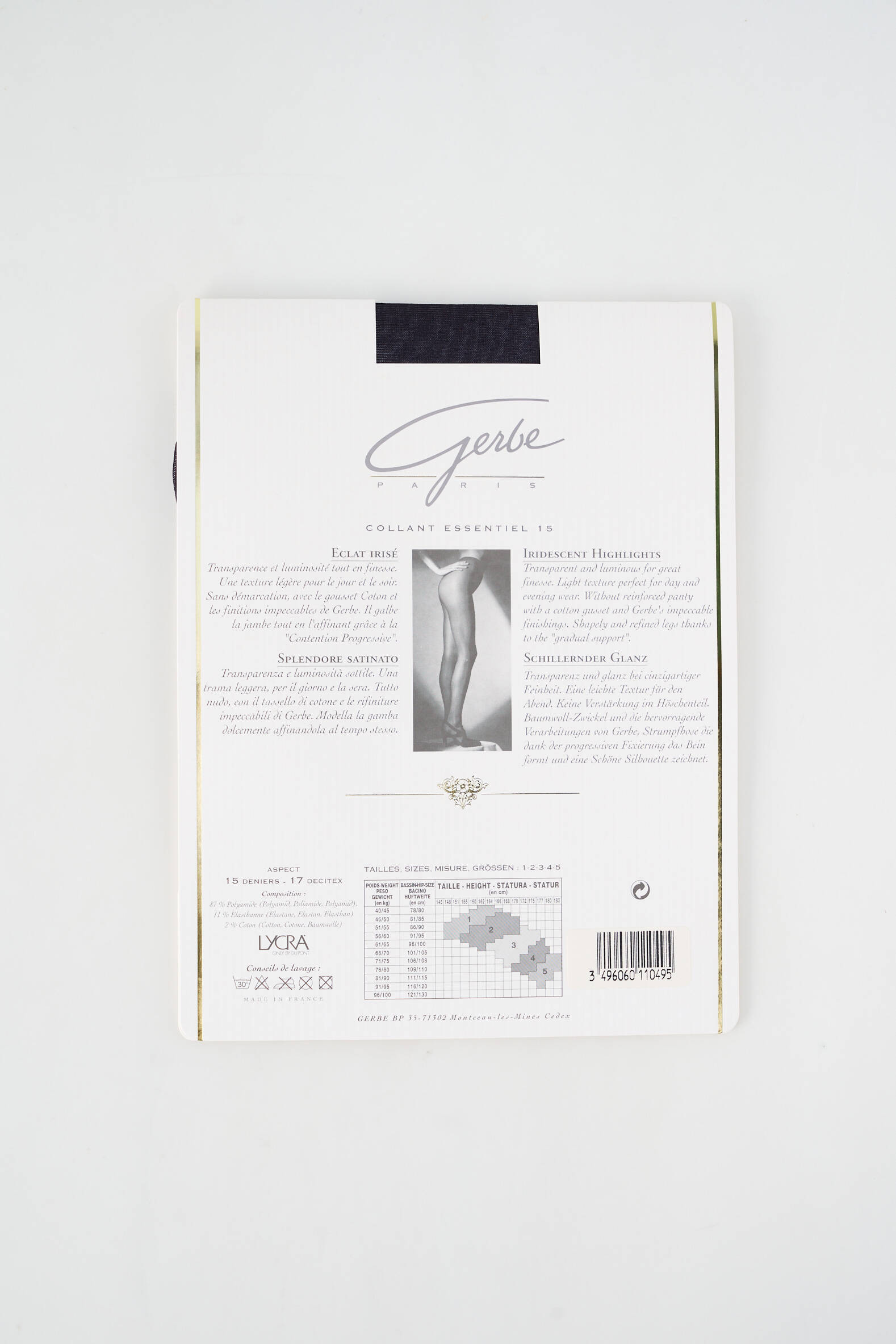 - Composition : 87 % Polyamide, 11 % Elasthane, 2 % Coton