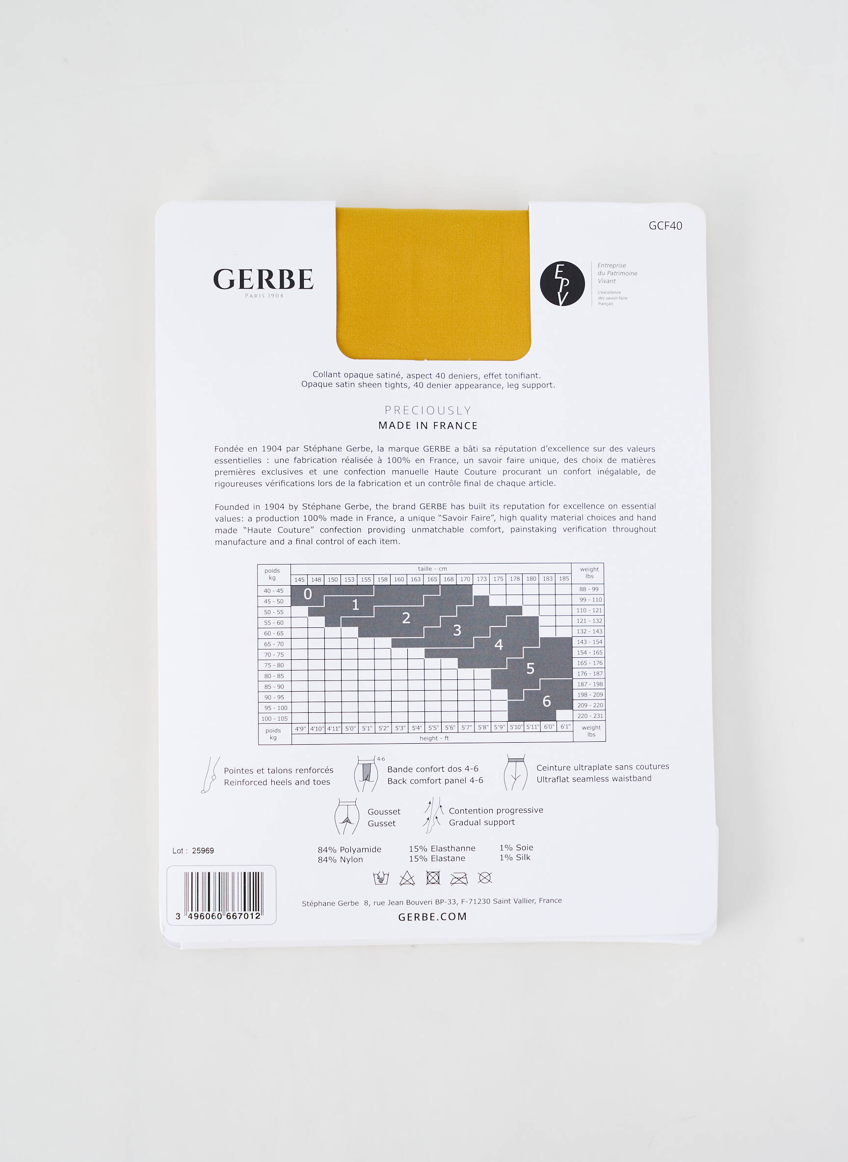- Composition : 84 % Polyamide, 15 % Elasthane, 1 % Soie