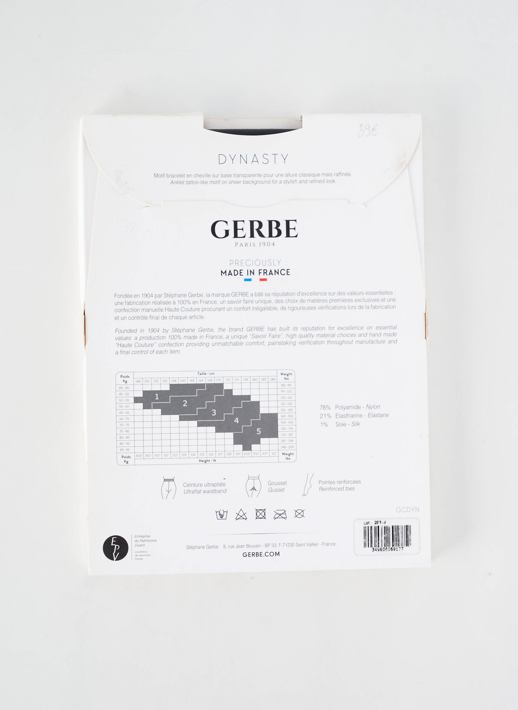 - Composition : 78 % Polyamide, 21 % Elasthane, 1 % Soie