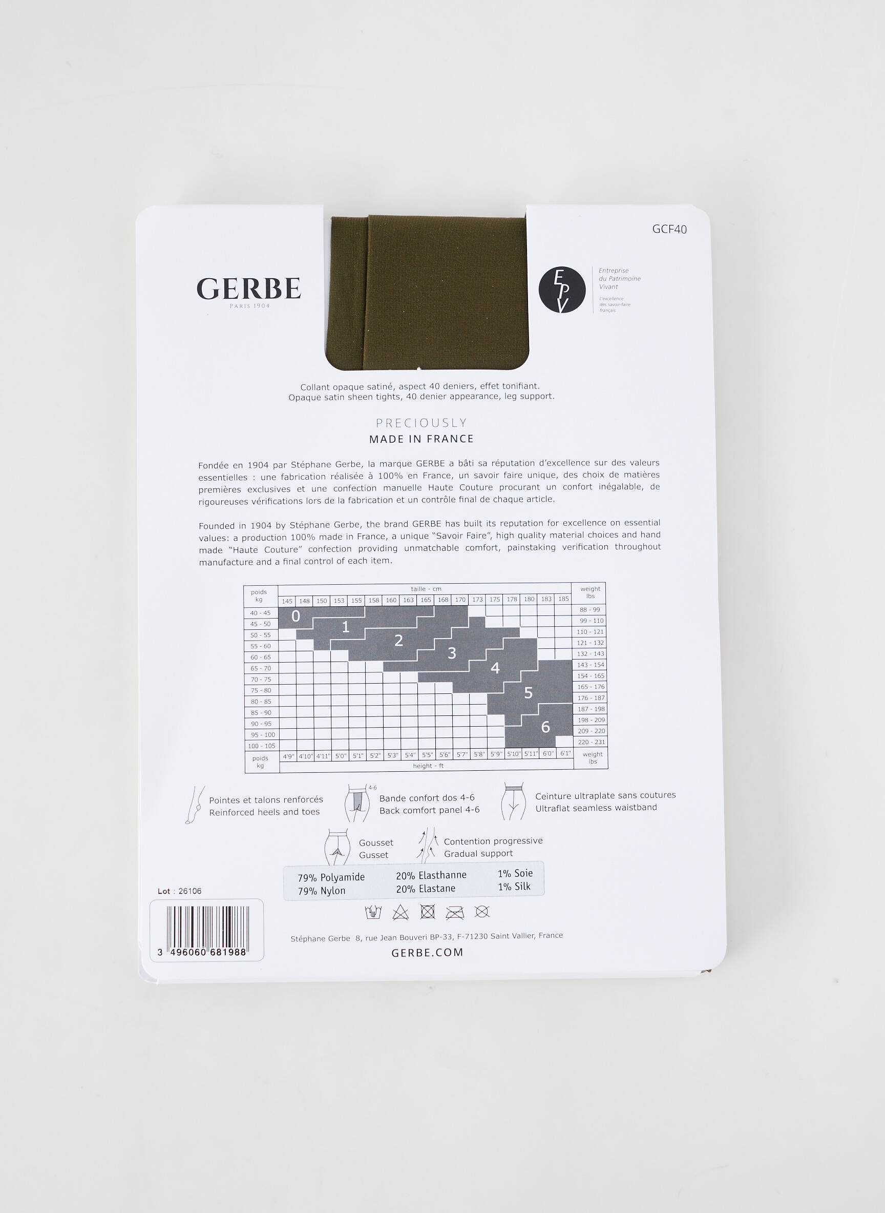 - Composition : 84 % Polyamide, 15 % Elasthane, 1 % Soie