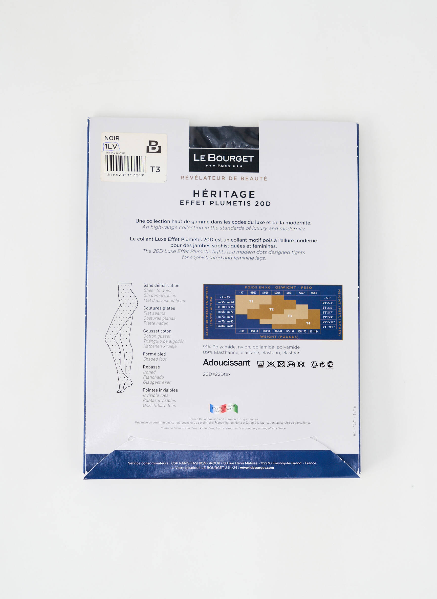 - Composition : 91 % Polyamide, 9 % Elasthane