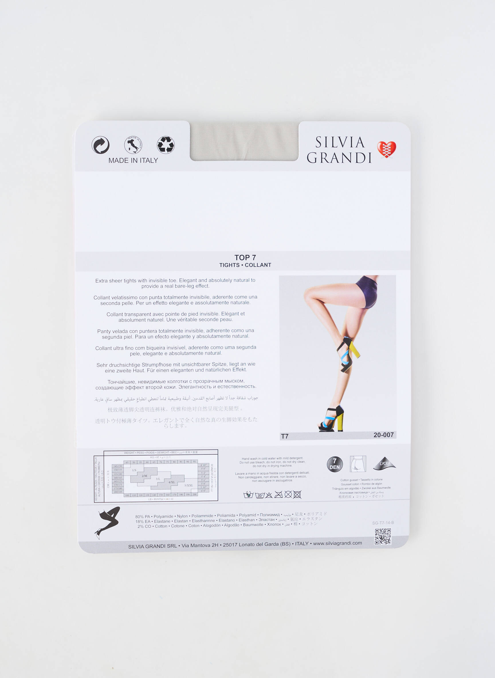 - Composition : 80 % Polyamide, 18 % Elasthane, 2 % Coton