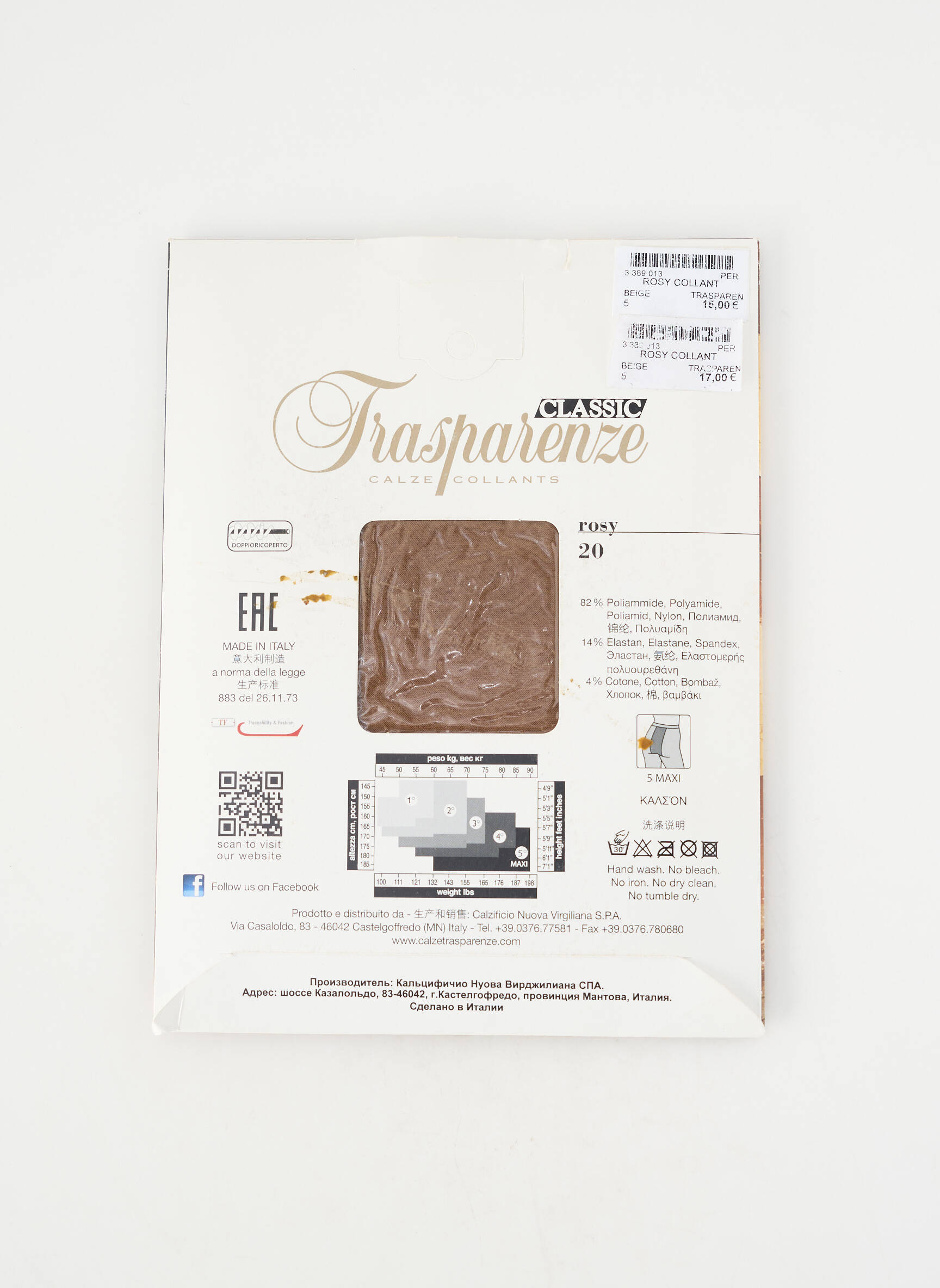 - Composition : 82 % Polyamide, 14 % Elasthane, 4 % Coton