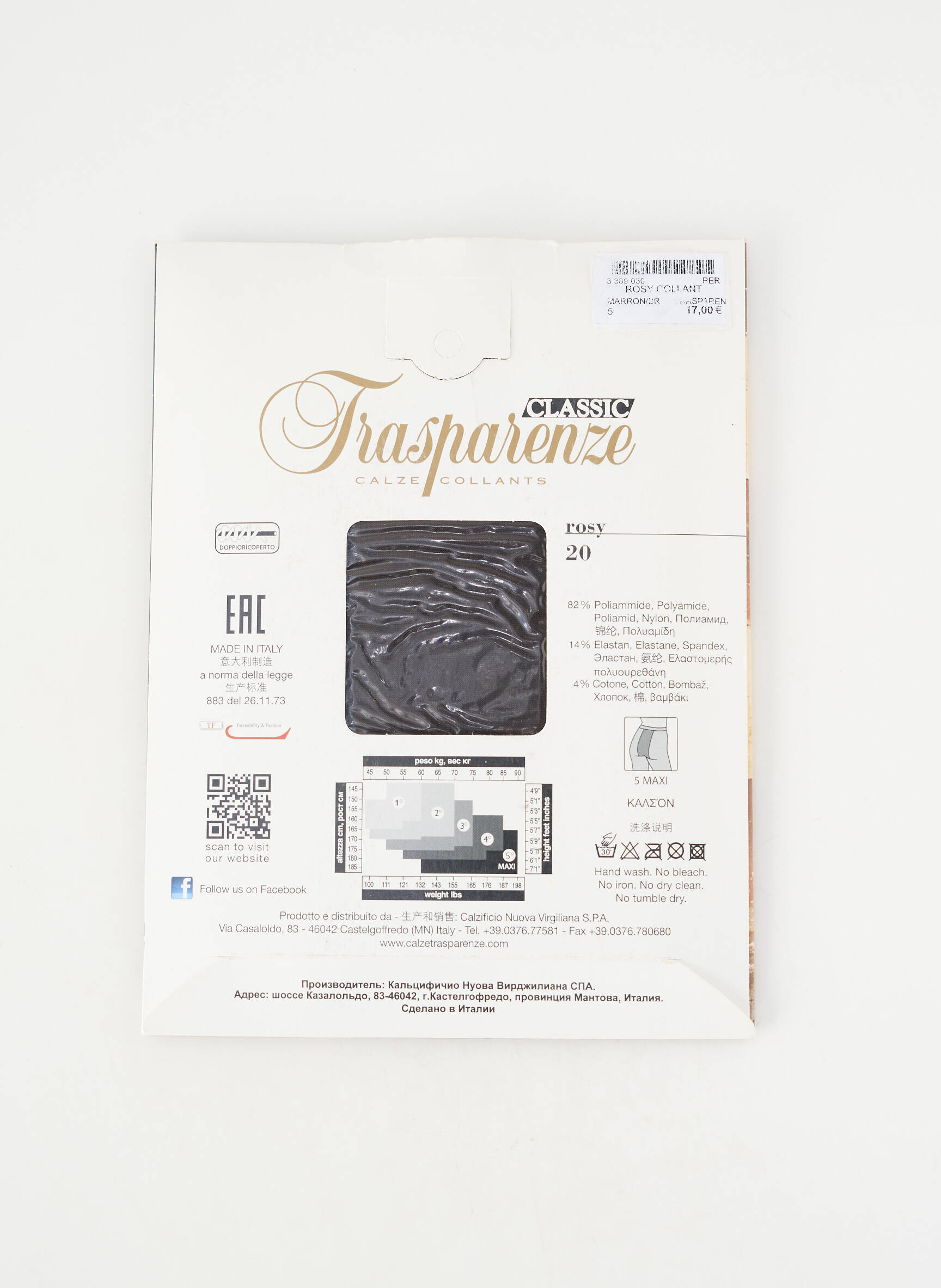 - Composition : 82 % Polyamide, 14 % Elasthane, 4 % Coton