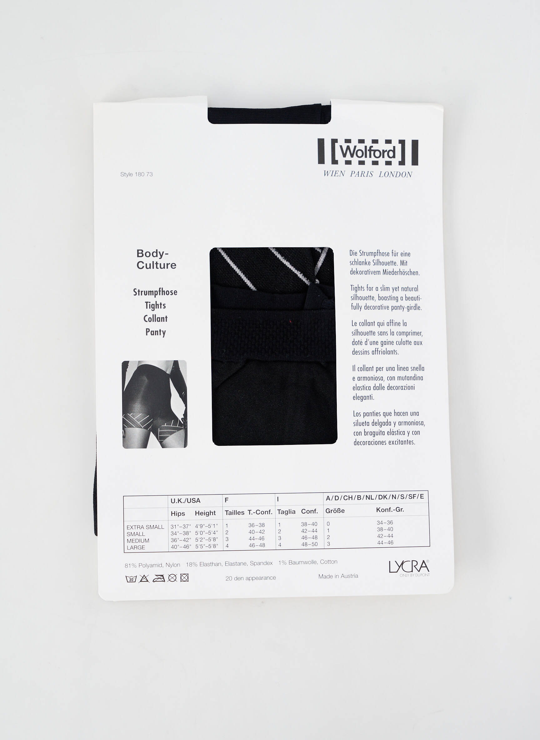- Composition : 81 % Polyamide, 18 % Elasthane, 1 % Coton