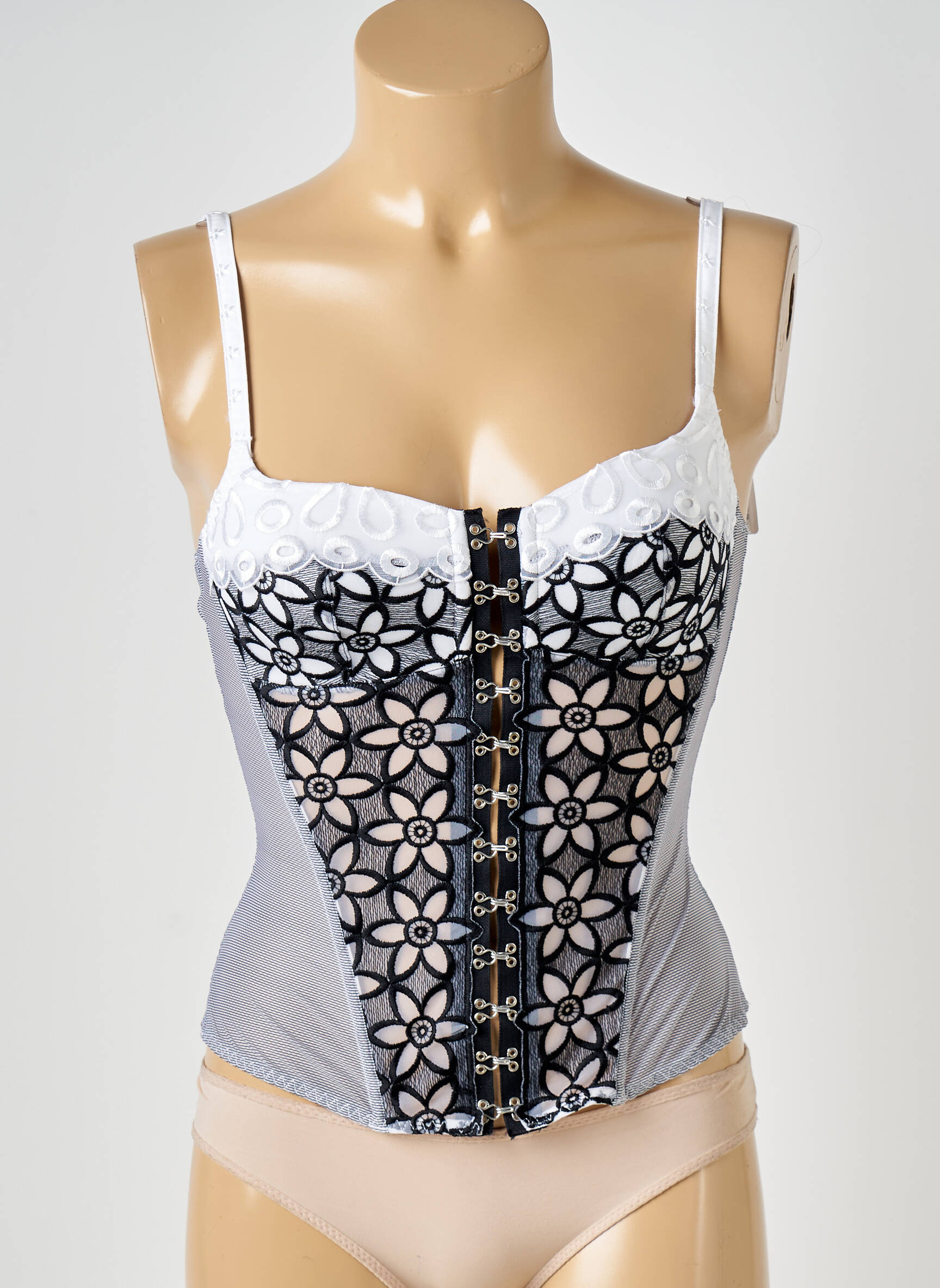Craquez pour ce corset Maison Lejaby à prix irrésistible, parfait pour donner une touche de raffinement à votre garde-robe sans vous ruiner. Son élégante broderie florale noire et blanche sur le devant, associée à un laçage accrocheur et à une coupe structurée, sublime la silhouette tout en apportant une note sophistiquée et féminine. C'est l'occasion idéale de vous offrir une pièce de créateur à petit prix.