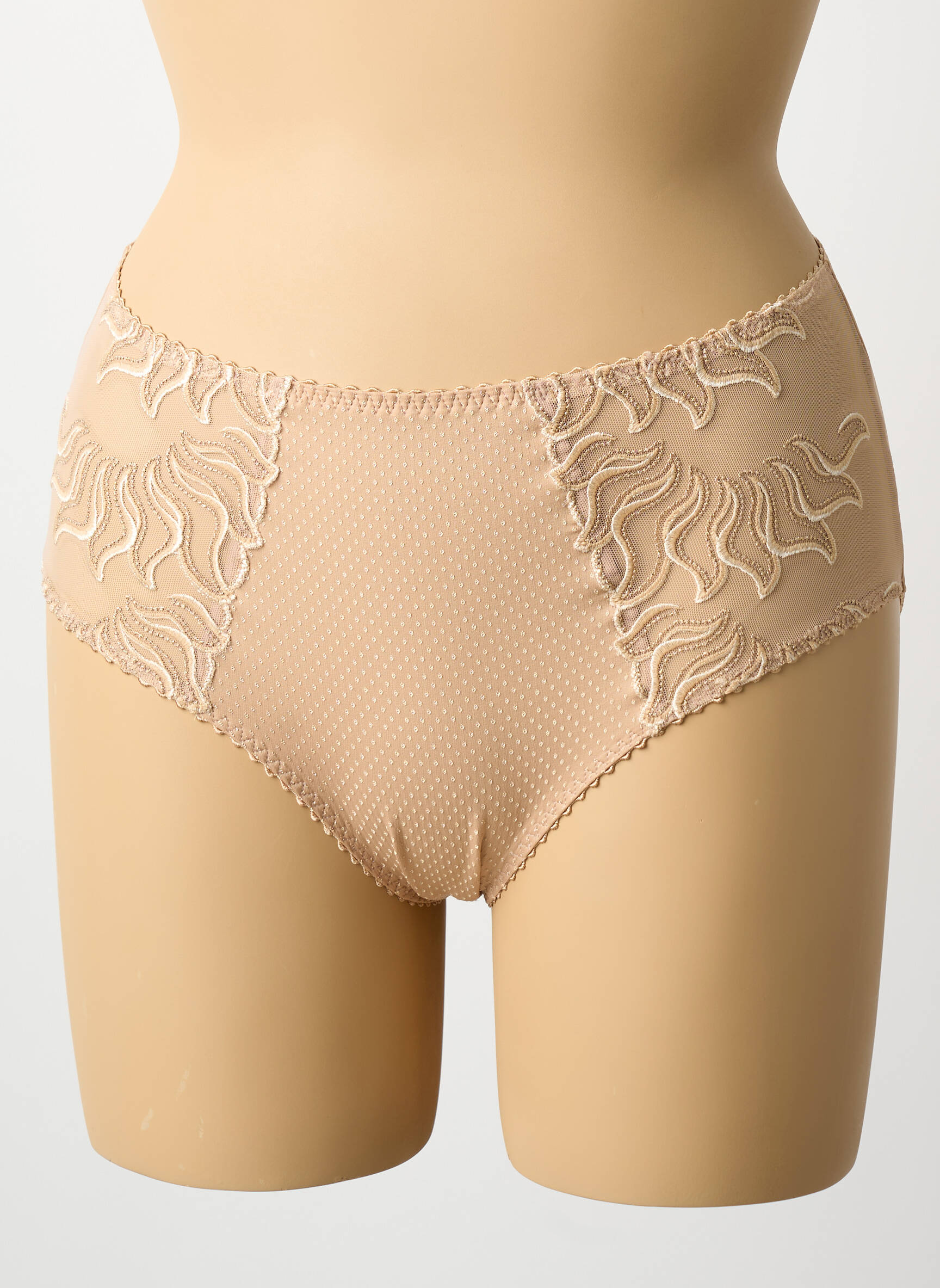 Profitez d'un vrai bon plan en vous offrant ces culottes hautes Louisa Bracq, qui allient élégance et confort à petit prix. Leur délicat tissu nude est rehaussé de broderies raffinées et d’un motif pois discret, dessinant un look féminin tout en douceur, idéal pour sublimer la silhouette au quotidien sans se ruiner.