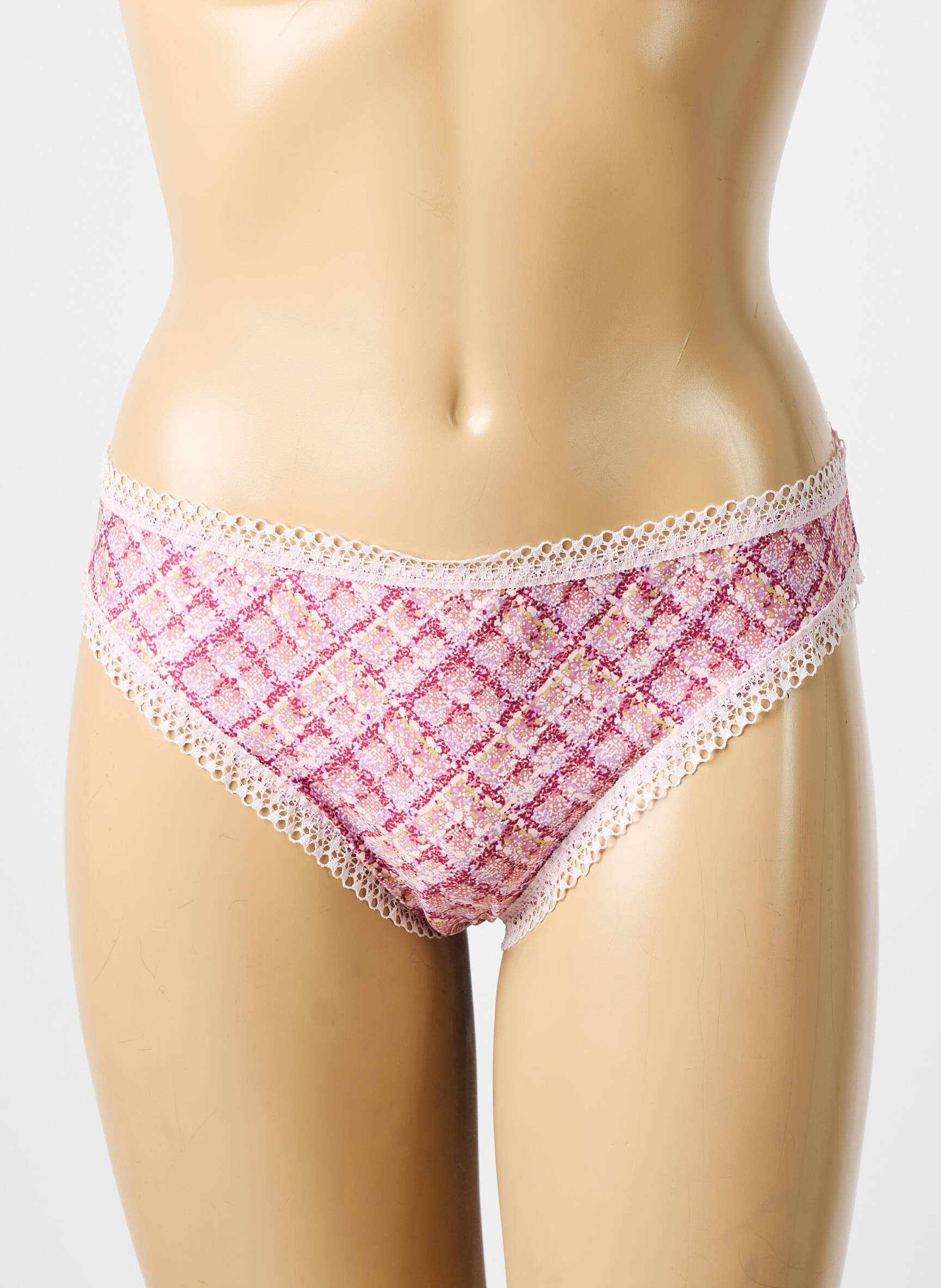 Craquez pour cette culotte Antigel pour femme, un bon plan à saisir pour se faire plaisir à petit prix tout en adoptant un style raffiné. Son tissu à imprimé graphique rose et blanc, sublimé par une délicate finition en dentelle tout autour de la taille et des cuisses, offre à la fois confort et élégance pour un quotidien plein de douceur. Profitez de cette pièce tendance au rapport qualité-prix imbattable, idéale pour celles qui recherchent de la lingerie féminine sans se ruiner.