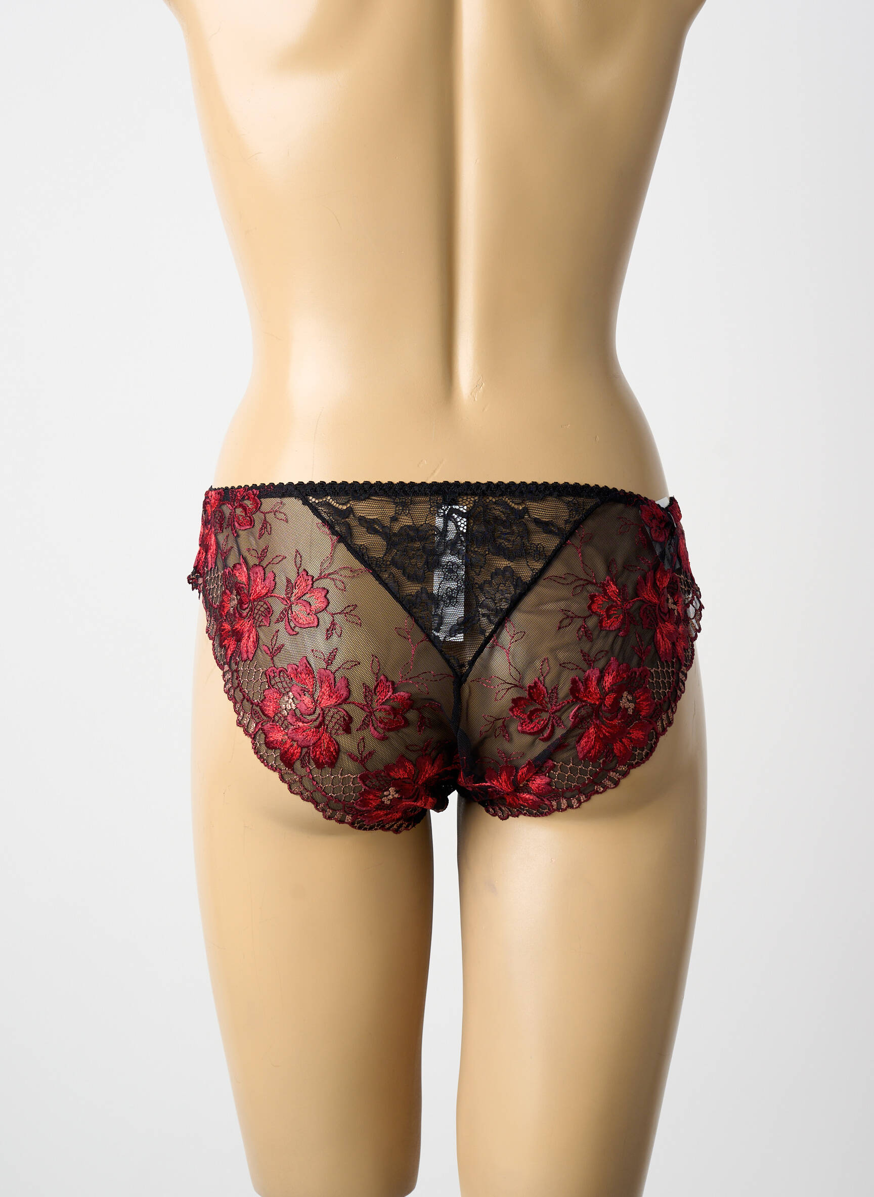 Offrez-vous l’élégance raffinée de la lingerie de marque sans vous ruiner avec cette culotte Aubade aux délicats détails en dentelle noire et broderies florales rouges, un choix parfait pour allier séduction et petit prix lors de votre shopping malin.