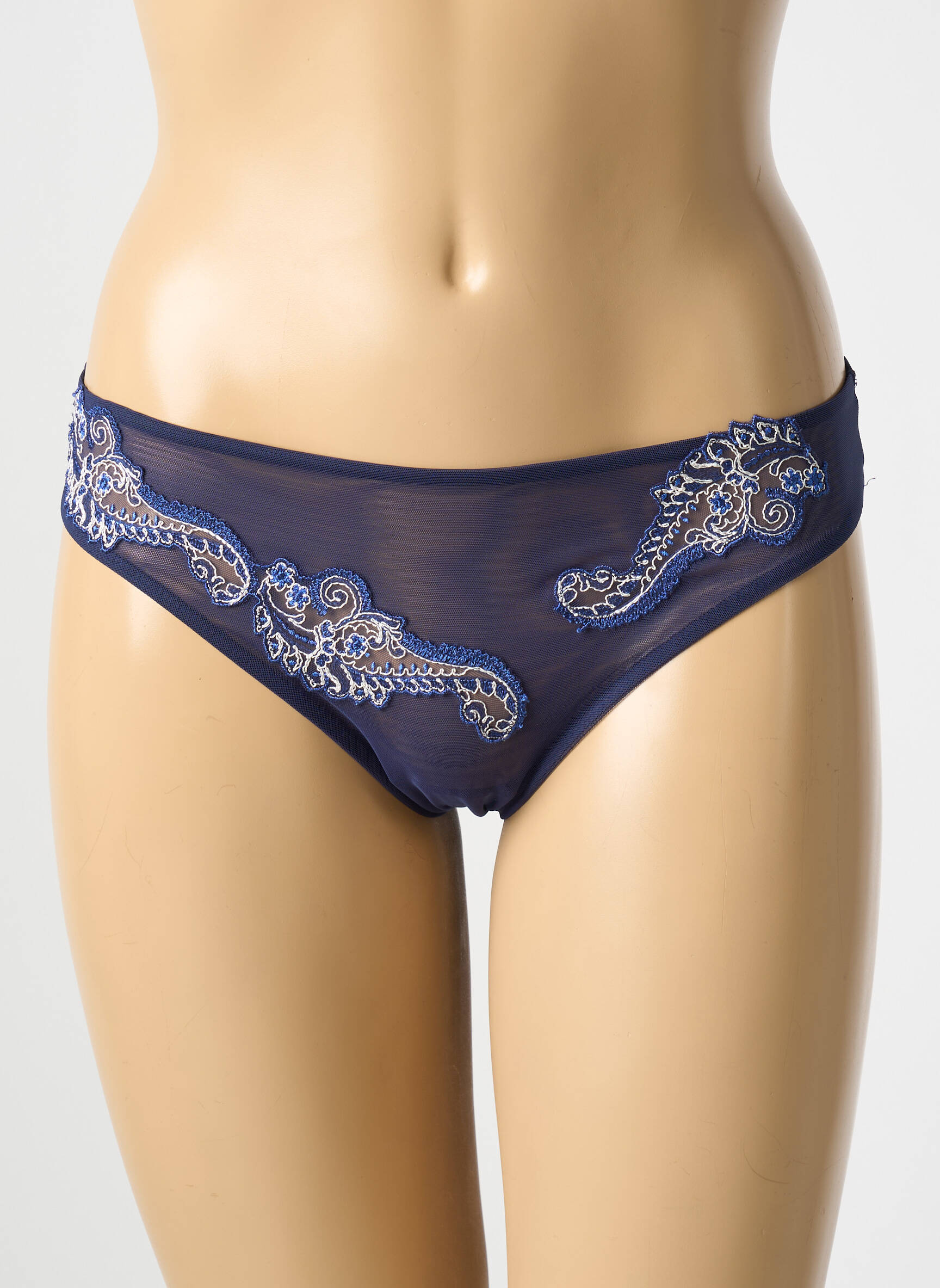 Profitez d’une véritable affaire avec ce slip femme de la marque Cotton Club, qui allie élégance et raffinement à petit prix. Sa finition en tulle bleu profond, rehaussée de délicates broderies aux motifs sophistiqués, offre une touche de féminité irrésistible. Sa coupe classique garantit un confort optimal tout en sublimant la silhouette, une opportunité idéale pour se faire plaisir avec une pièce de créateur sans se ruiner.