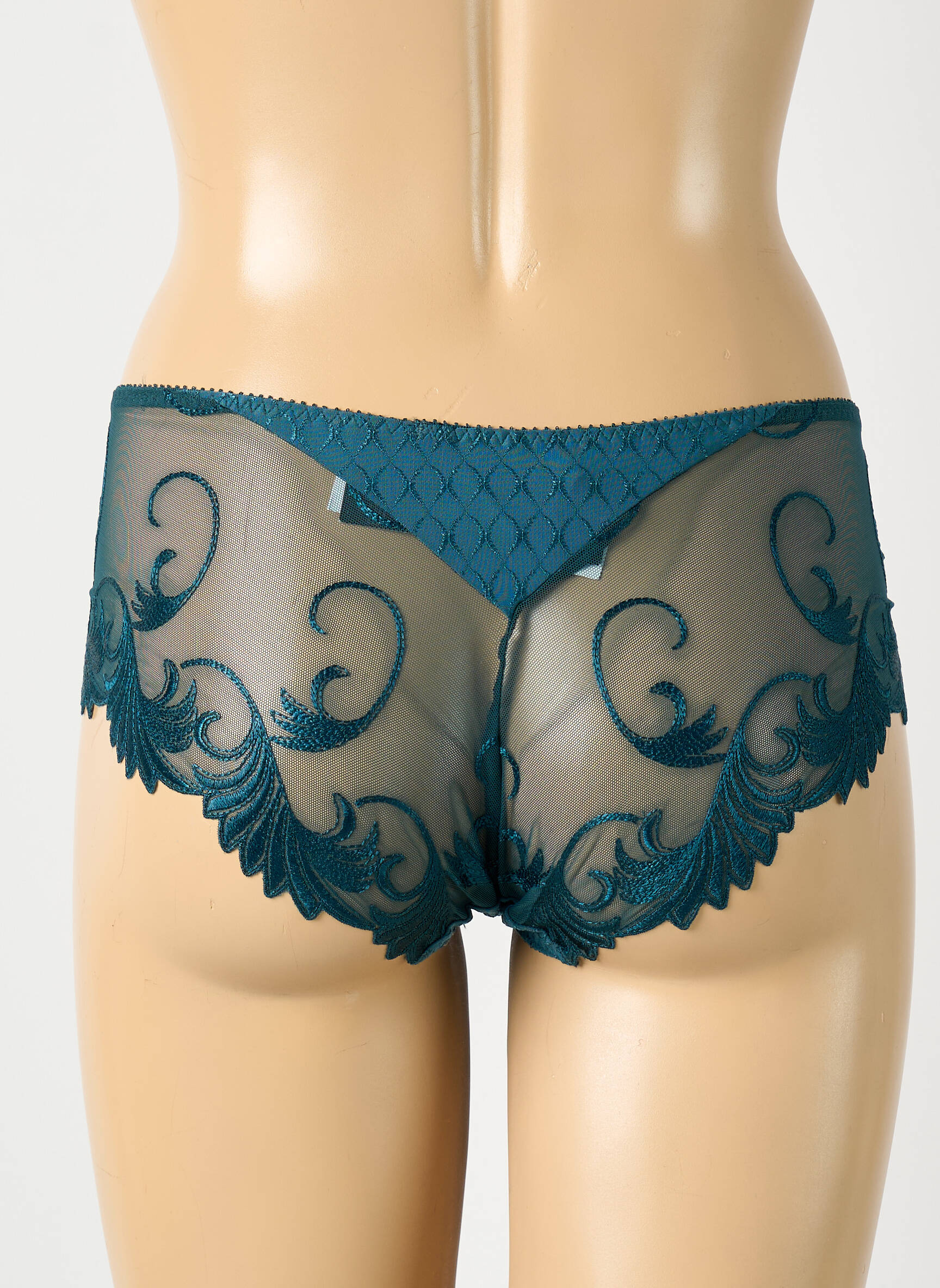 Craquez pour cette culotte de la marque Empreinte à prix mini, idéale pour se faire plaisir sans se ruiner. Son tissu d’un joli bleu pétrole s’orne de motifs délicats et de broderies raffinées qui apportent une touche de féminité à votre quotidien, tandis que les empiècements transparents sur les côtés ajoutent une note élégante et séduisante. C’est le bon plan lingerie du moment pour allier confort et sophistication à petit prix.