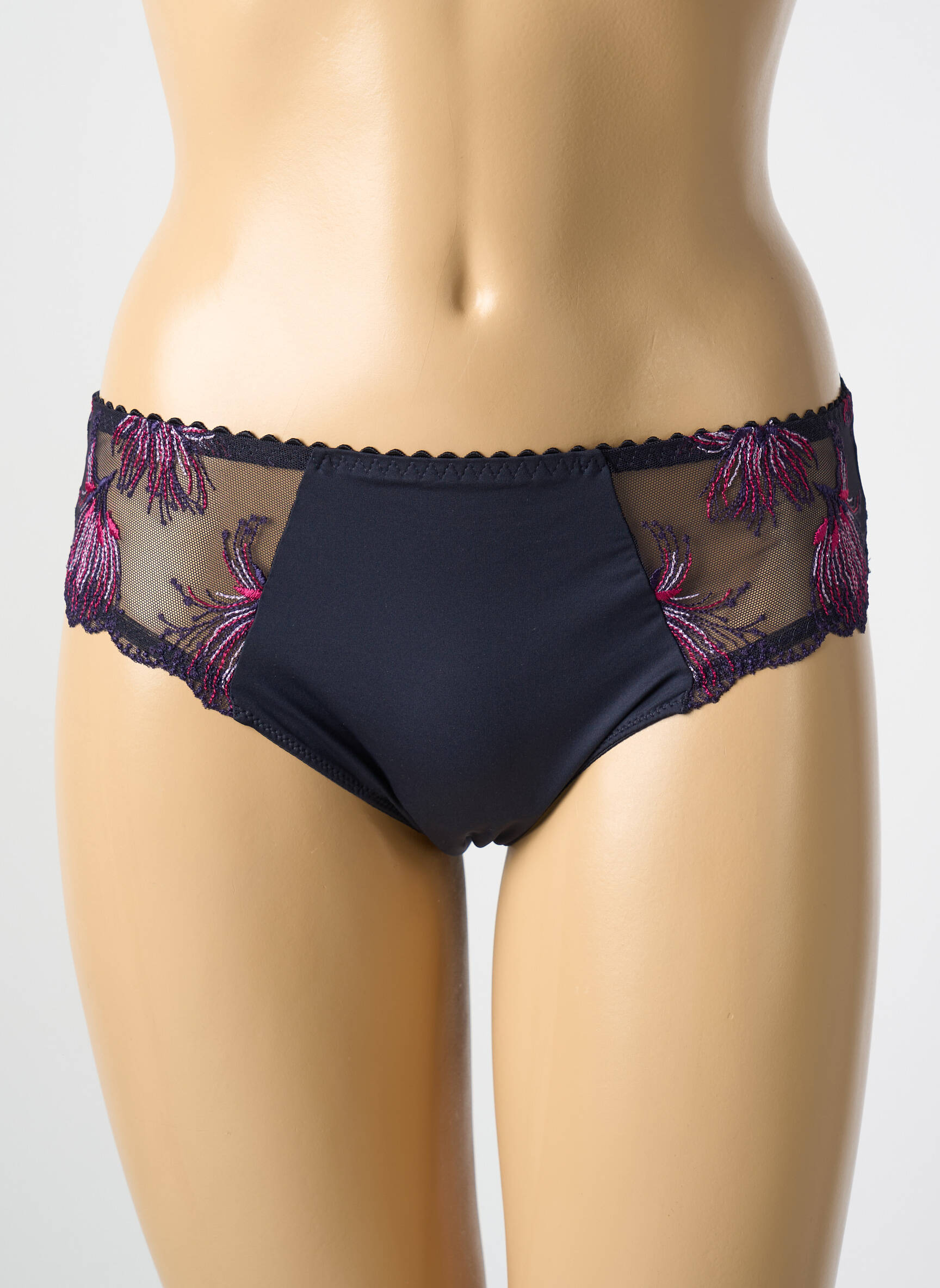 Profitez d’un vrai bon plan avec cette culotte Prima Donna, qui allie élégance et petit prix pour sublimer votre quotidien sans compromis. La douceur de son tissu noir uni s’accompagne de touches raffinées avec des empiècements en tulle délicatement brodé de motifs floraux fuchsia sur les côtés, offrant un jeu de transparence discret et féminin. C’est le choix parfait pour s’offrir le confort et le raffinement à moindre coût.