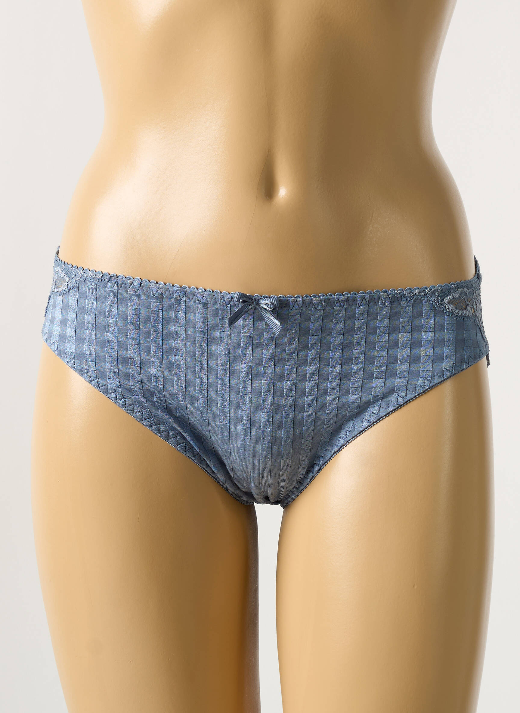Craquez pour cette culotte femme PRIMA DONNA à prix mini, idéale pour celles qui souhaitent allier style raffiné et économie. Ce modèle arbore un motif à petits carreaux bleu élégant, délicatement rehaussé d’un nœud satiné à la taille, tandis que les côtés sont agrémentés de détails transparents soulignant la féminité du produit. Saisissez ce bon plan et profitez d’un sous-vêtement chic et confortable à prix déstocké !